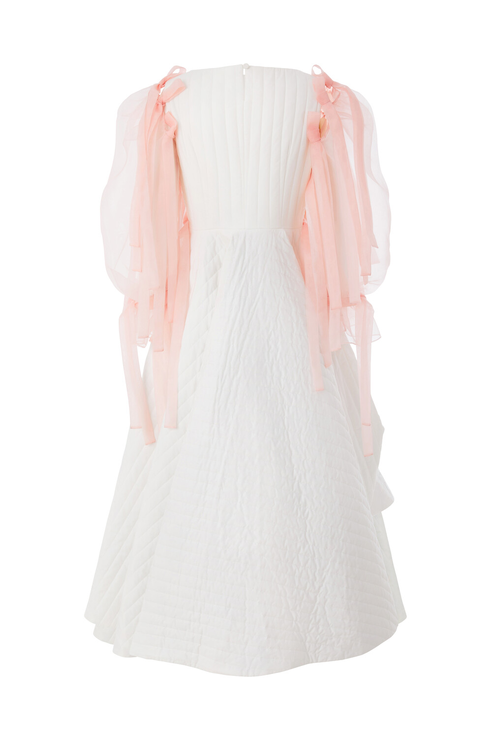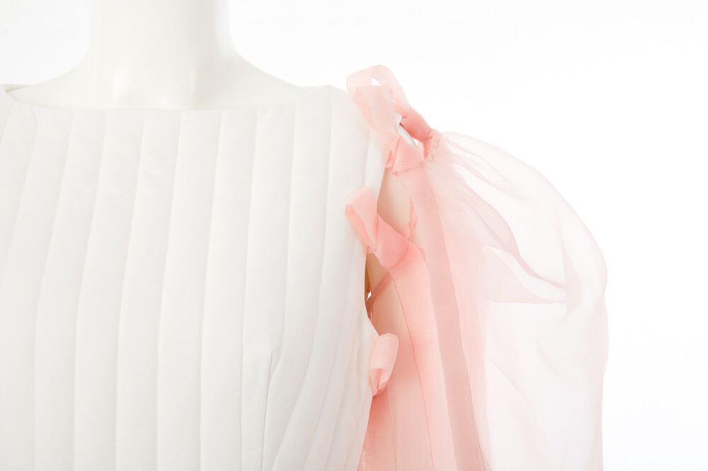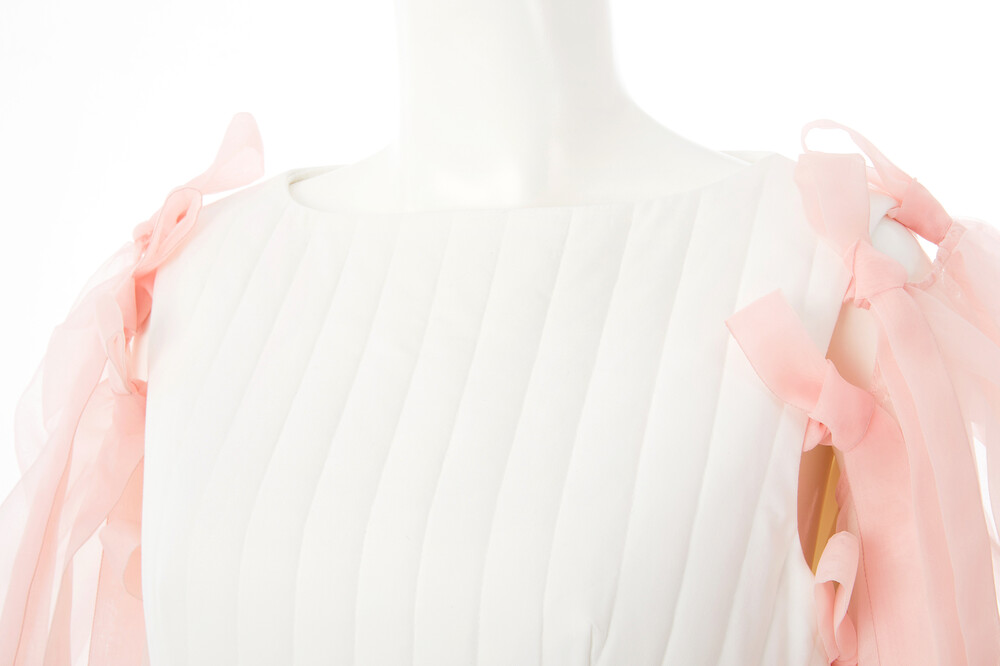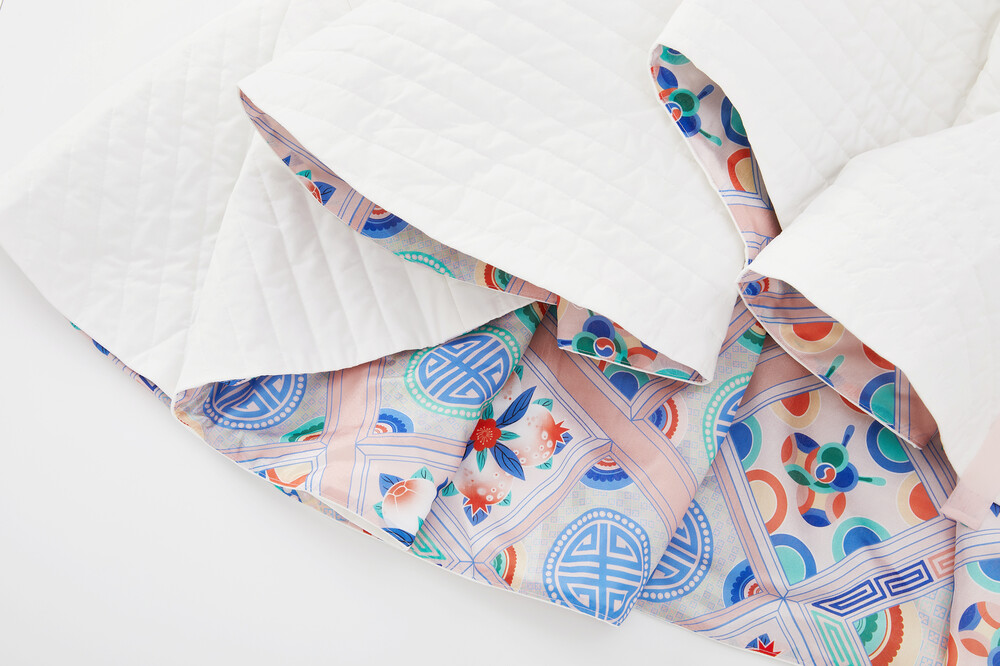 과실문 누빔 피날레 드레스는 한국 전통 누빔 기법으로 제작된 원단을 사용해 따뜻하고 포근한 느낌을 제공합니다. 리본을 묶는 방식에 따라 스커트의 길이감을 조절할 수 있어 개성 있는 실루엣을 연출할 수 있습니다.
