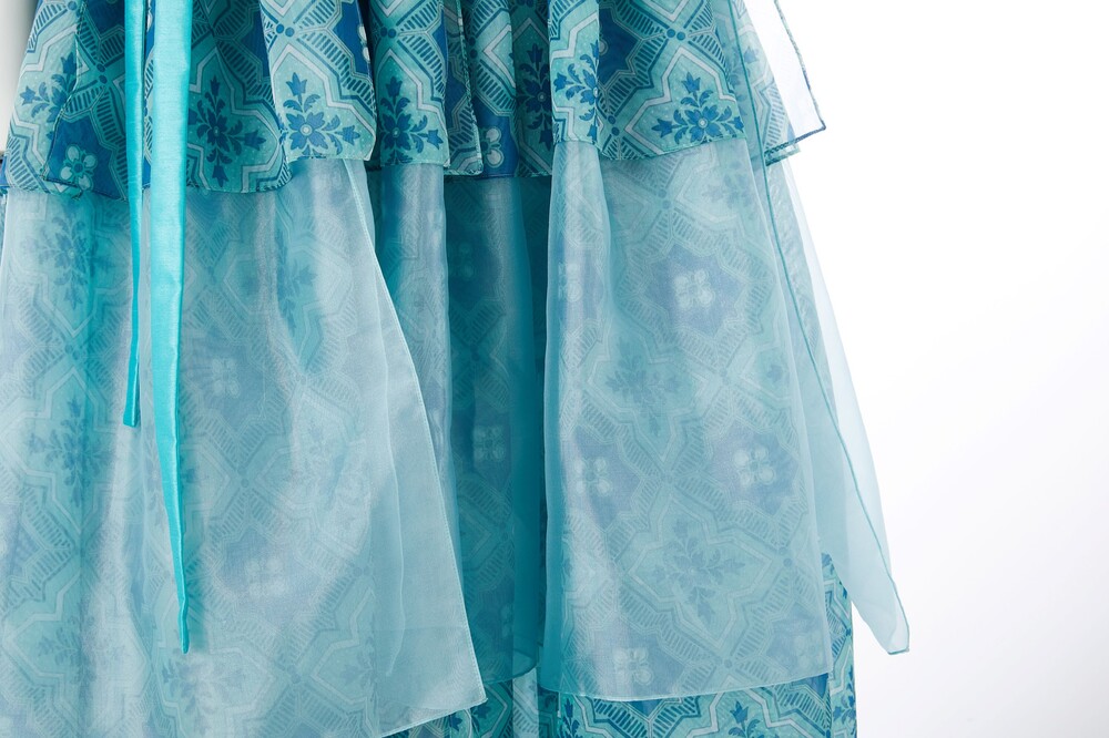 * 여러 갈래의 폭이 이어진 갈래 드레스이기 때문에 단독으로 입으실 경우에는