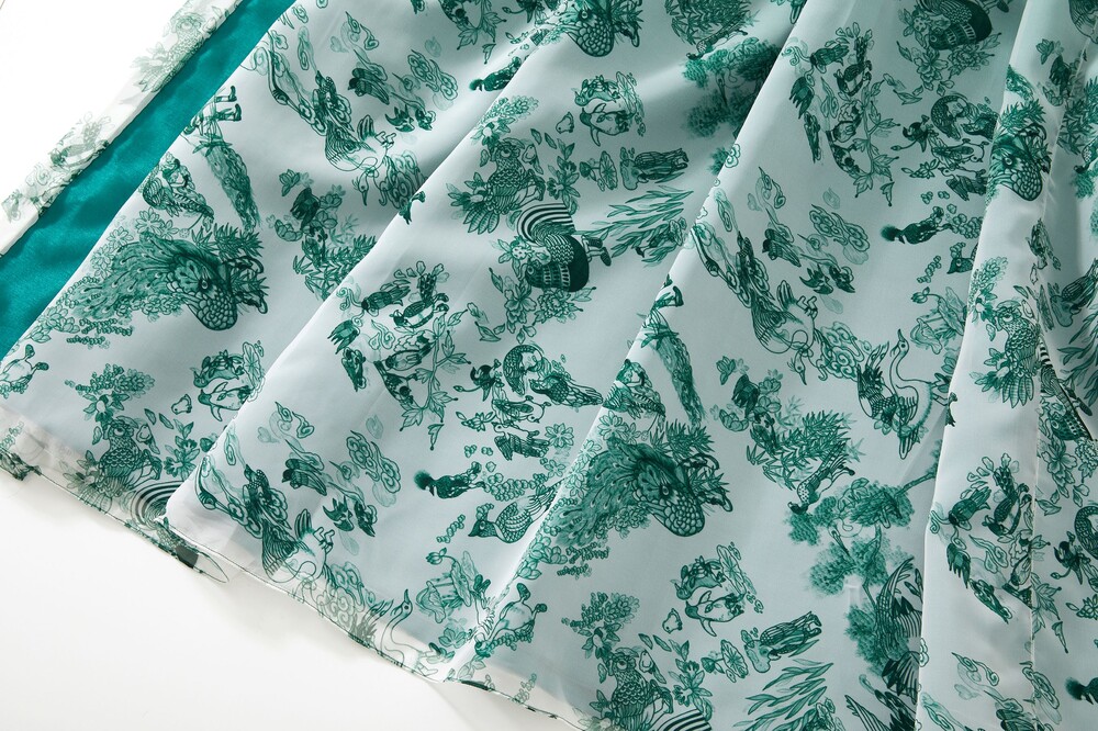 화조도 그라데이션 드레스는 이전경 작가님의 화조도 패턴을 사용한 그라데이션 드레스로,