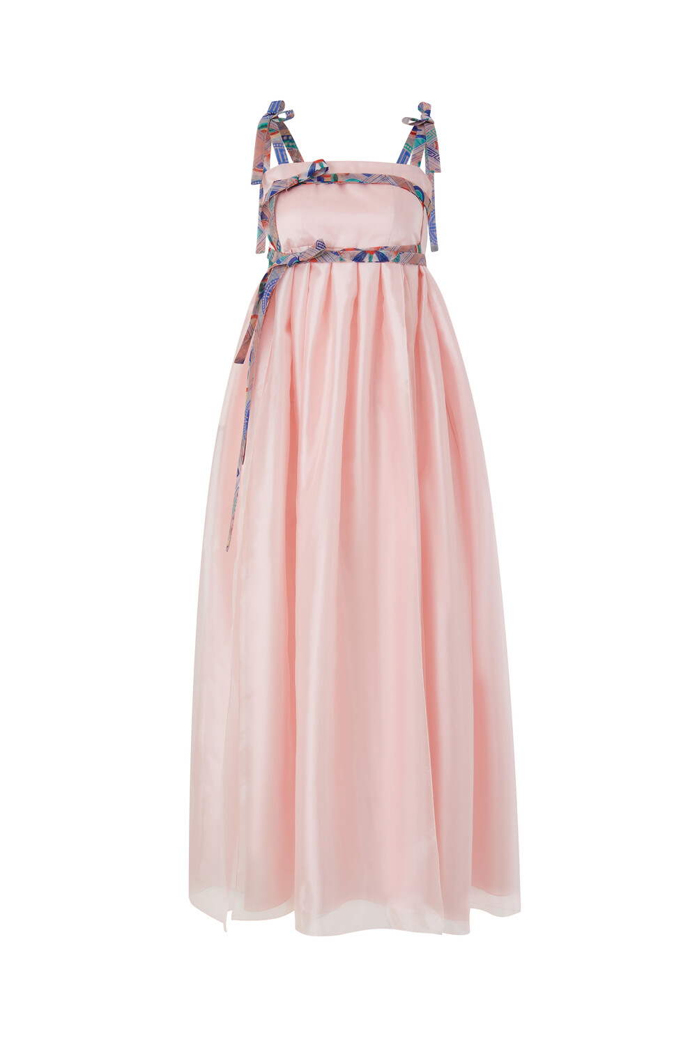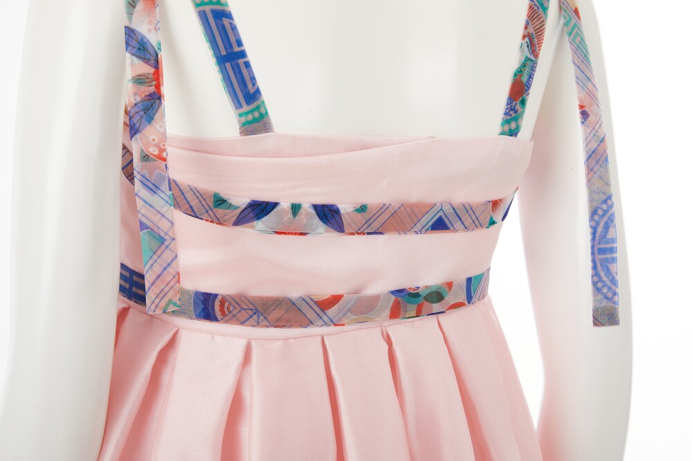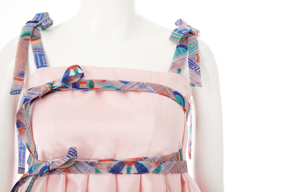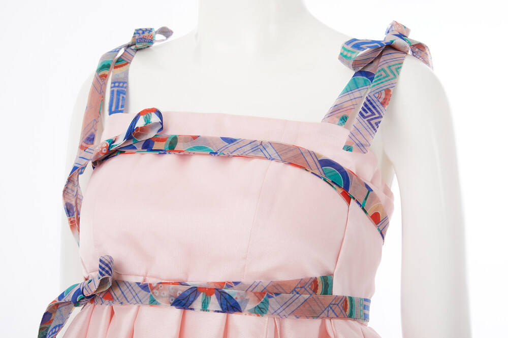 사랑스러운 핑크 컬러에 전통 과실문을 현대적으로 풀어낸 리본 패턴이 어깨끈에 더해져