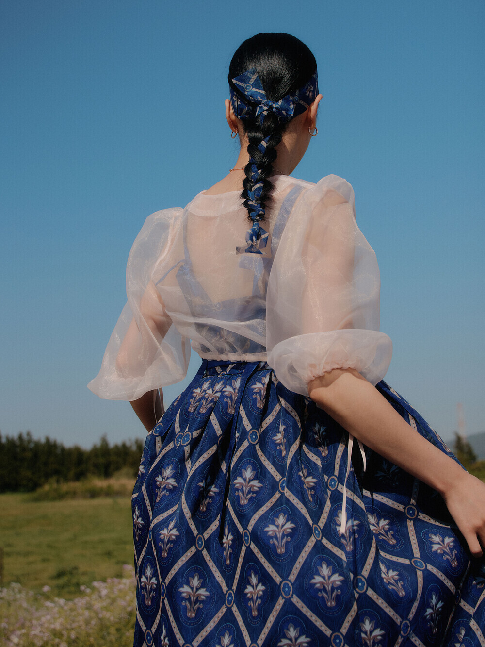 가디건의 아랫단과 소매 부분 리본으로 볼륨감을 만들 수 있습니다.