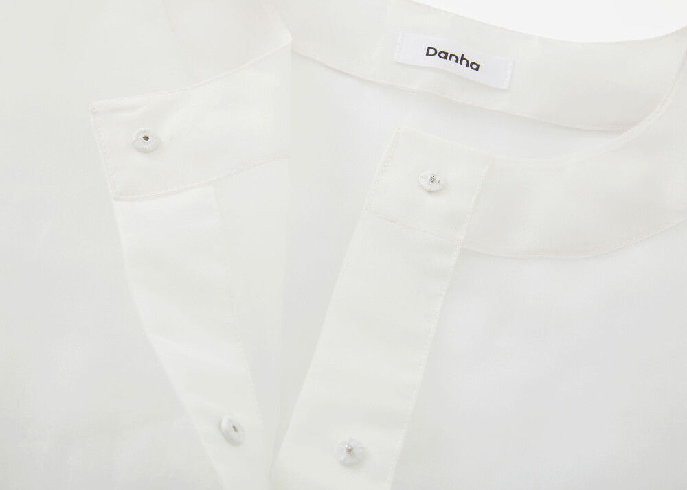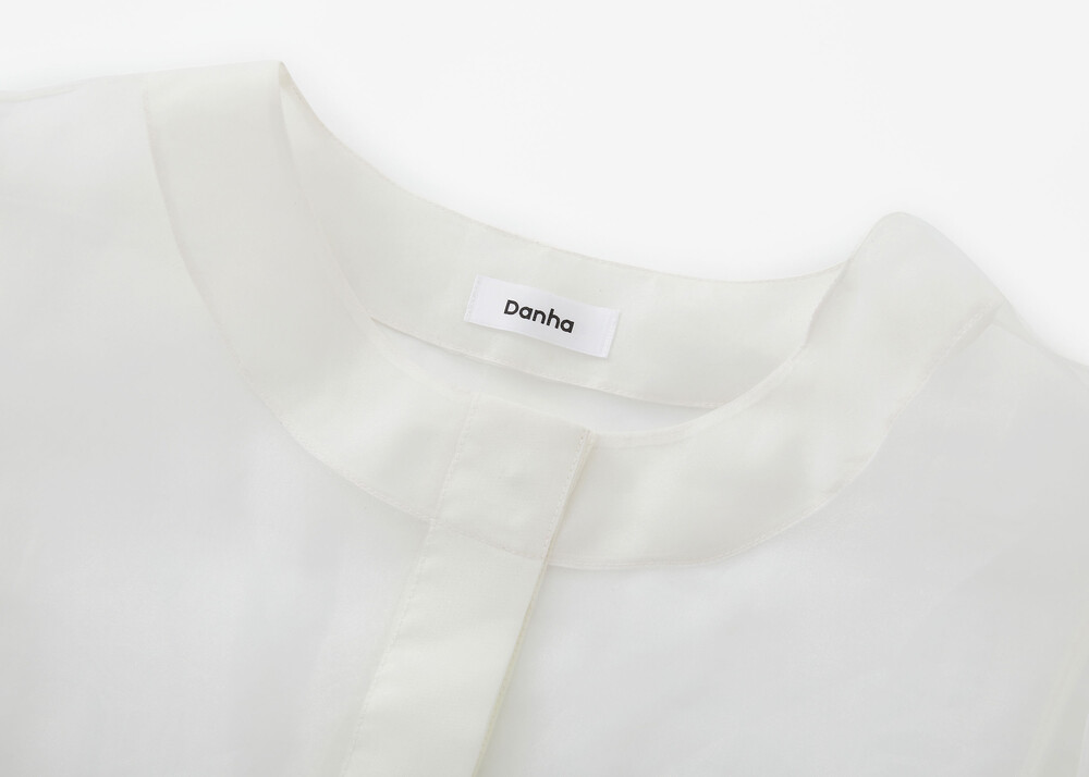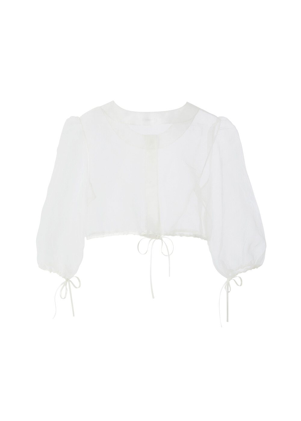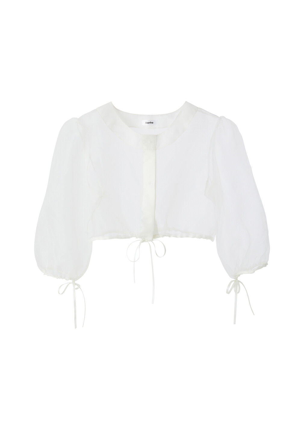 단령 깃 형태의 비침이 있는 볼레로 가디건입니다.