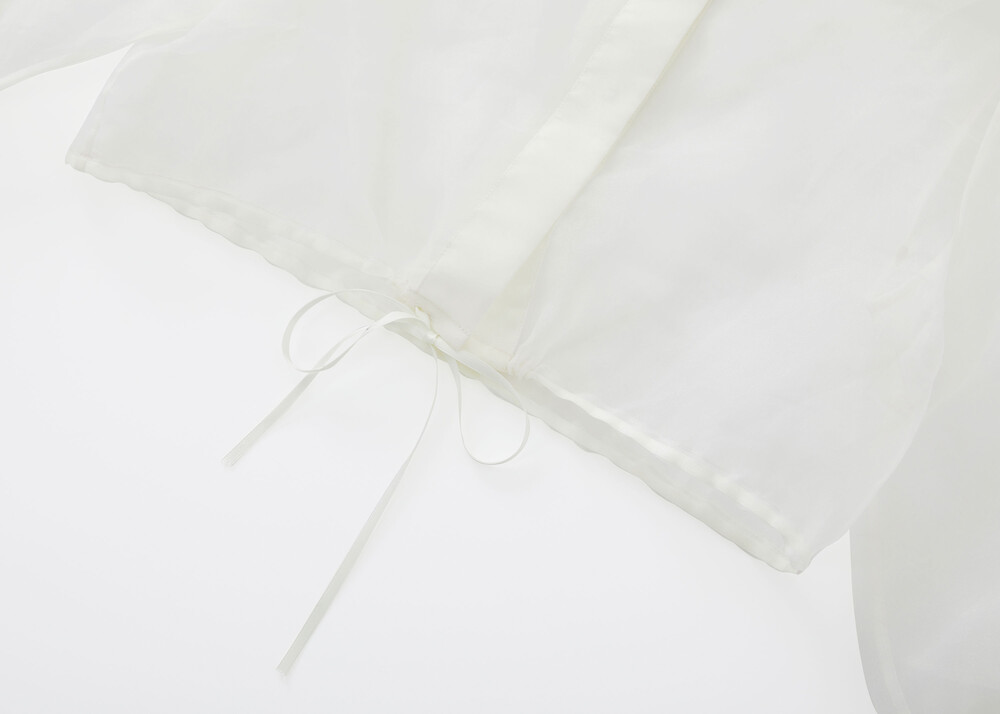 가디건의 아랫단과 소매 부분 리본으로 볼륨감을 만들 수 있습니다.
