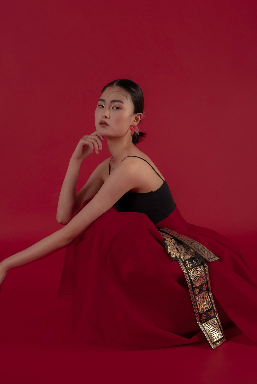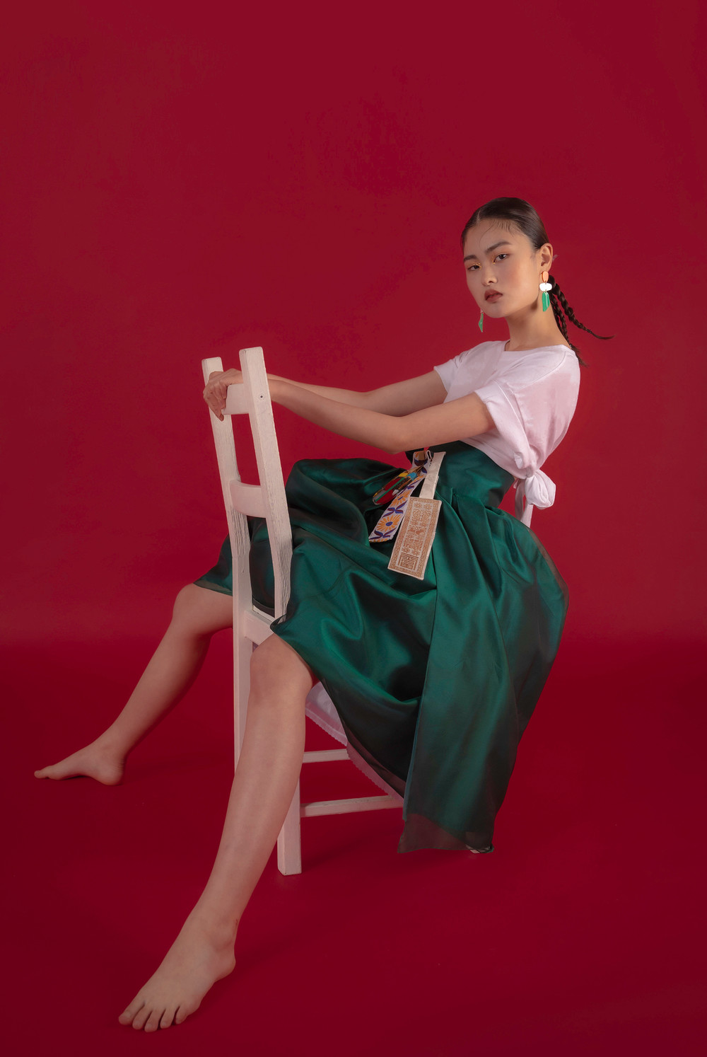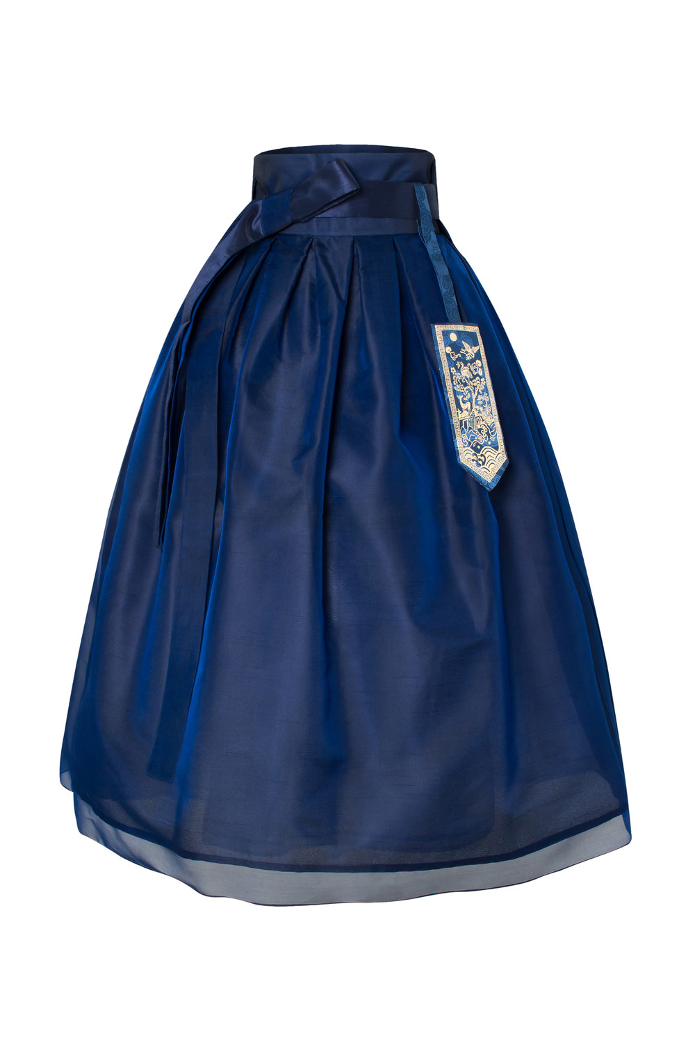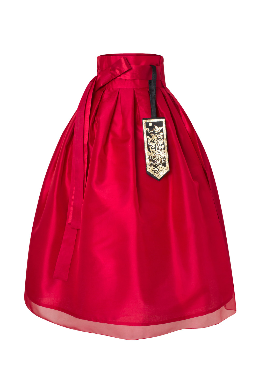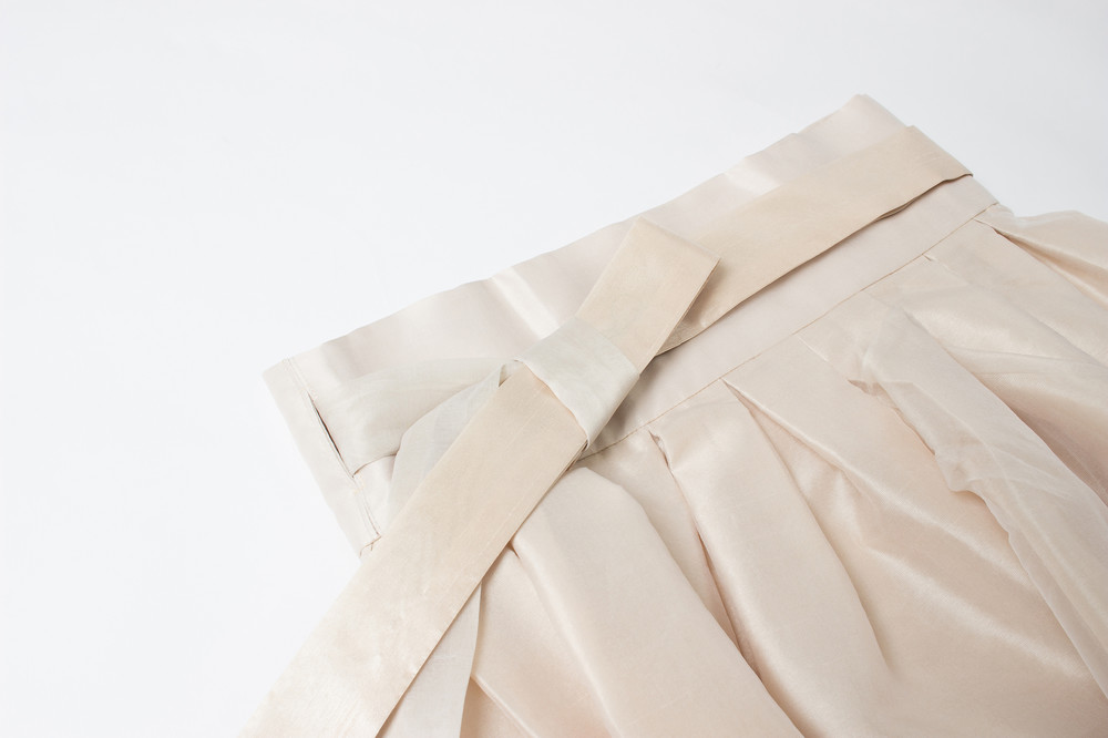 돌금박 스커트는 100% 노방 실크 원단으로 만든 봉긋하고 심플한 스커트로