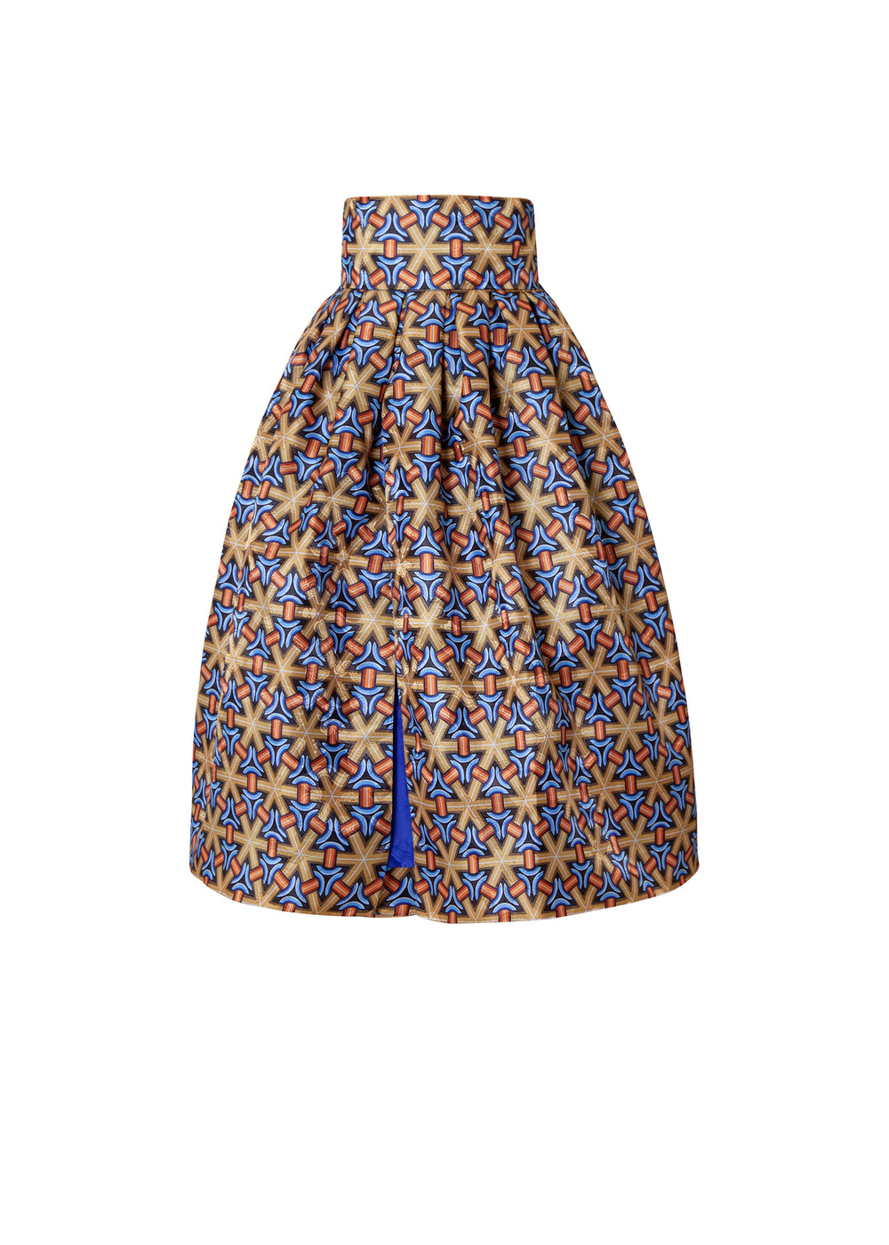 쌀미 고리금 갈래 치마는 쌀미 고리금 단청 문양으로 디자인된 갈래 스커트입니다.