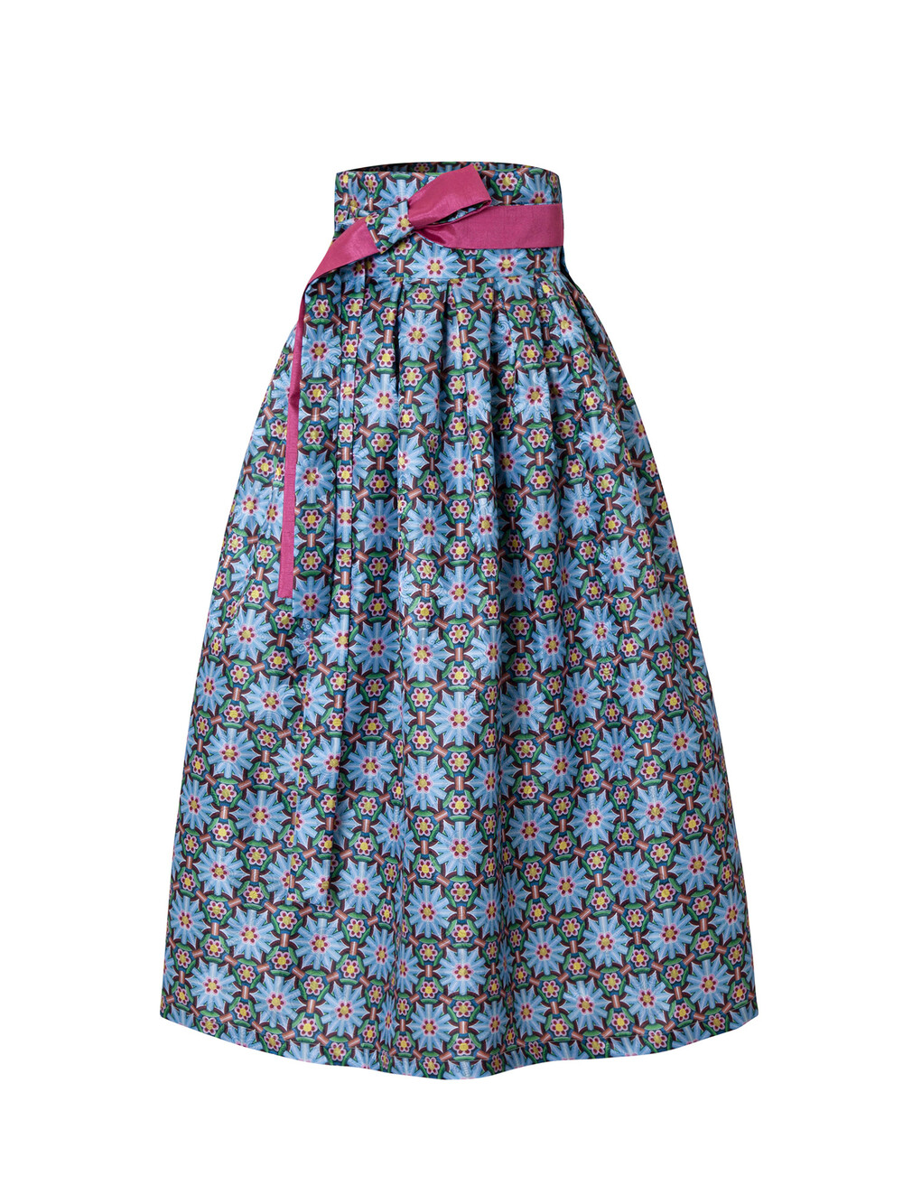 은은하게 문양이 짜인 운문단에 디지털 프린팅으로 표현된 물레금 치마는