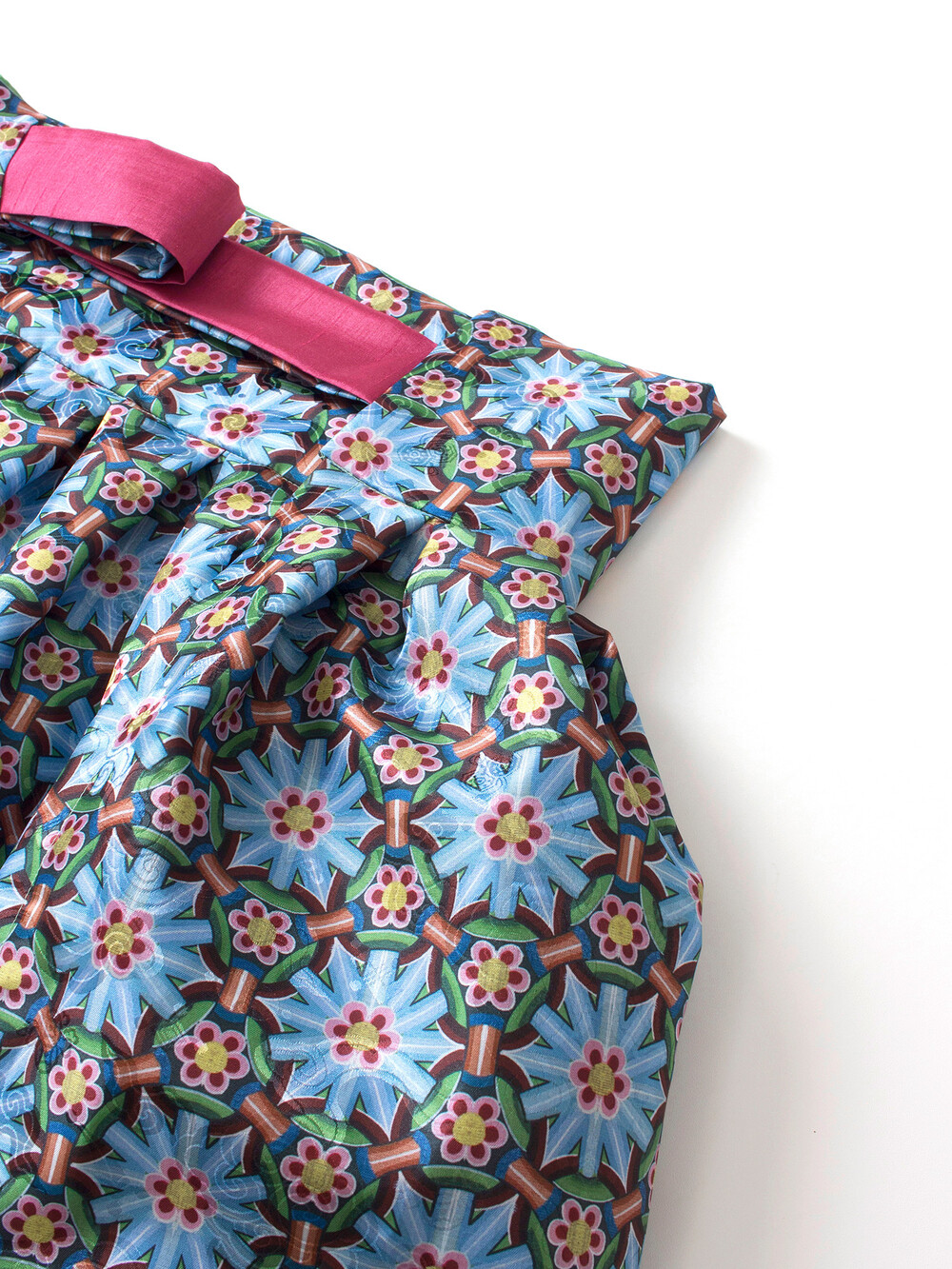둘러입는 랩 형태이며 분홍색 말기 리본이 고급스러운 포인트가 됩니다.