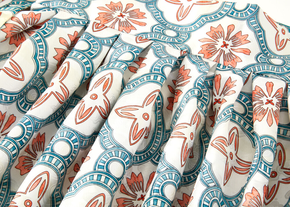 나비문 허리 치마는 단하가 리디자인한 조선 궁중 도배지 문양인 나비문 문양을 사용하여