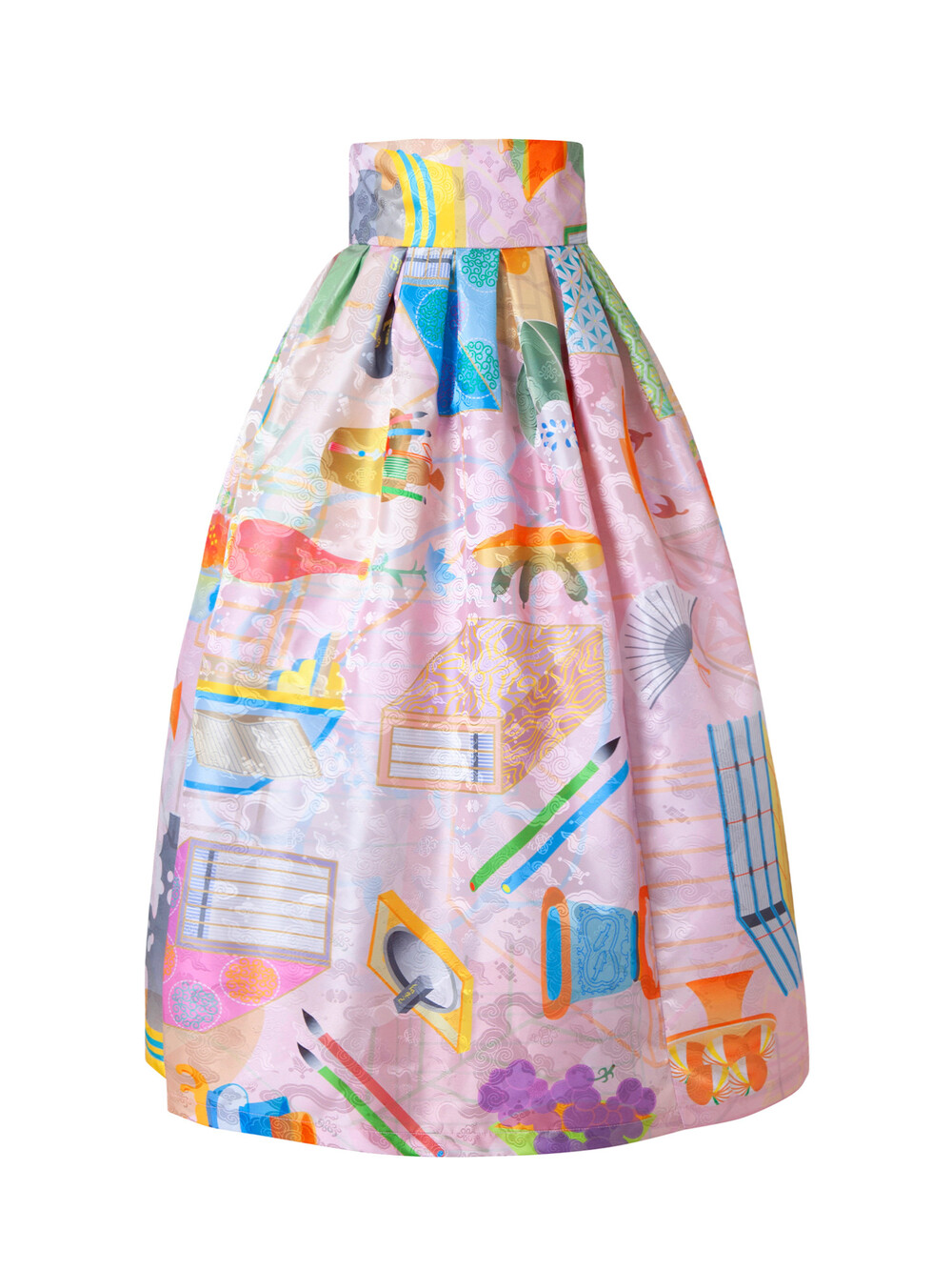 책가도 치마 핑크는 이 전경 작가의 책가도로 디자인된 둘러입는 스커트입니다.