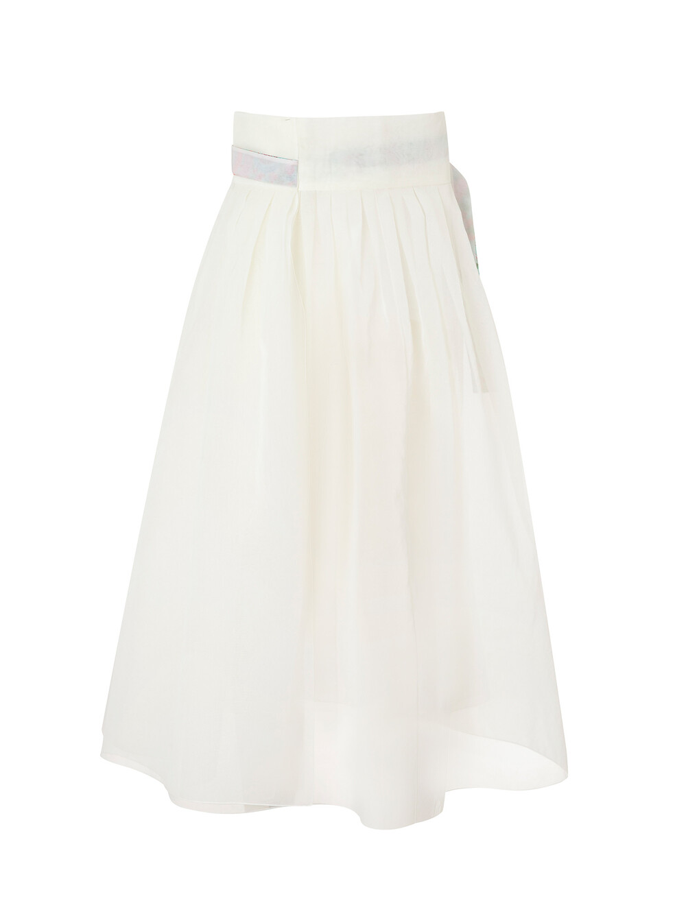 허리 끈에 포인트로 들어간 허리 치마입니다.