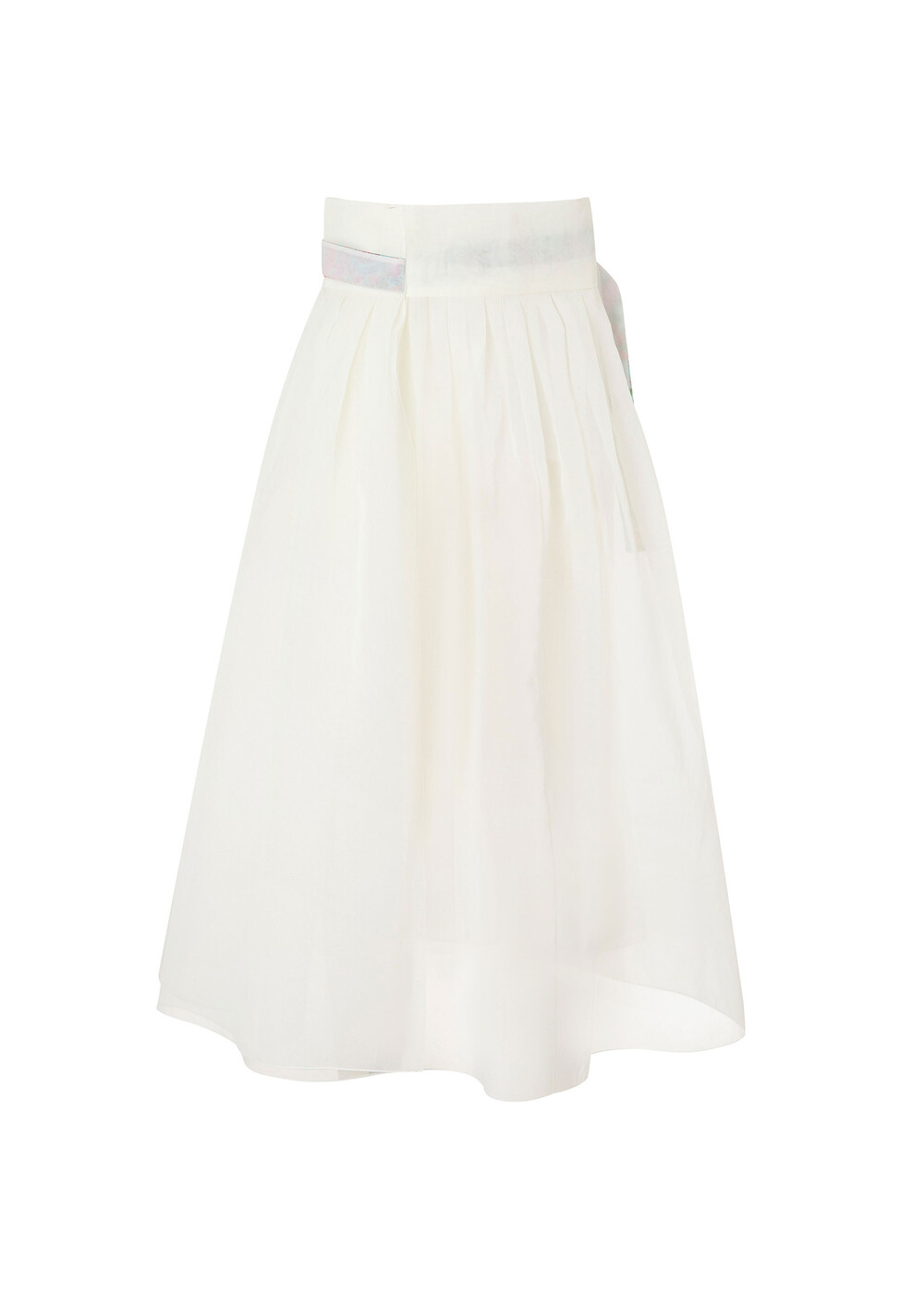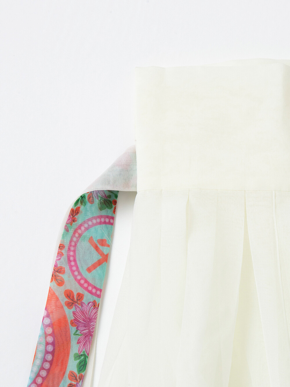 허리 끈에 포인트로 들어간 허리 치마입니다.