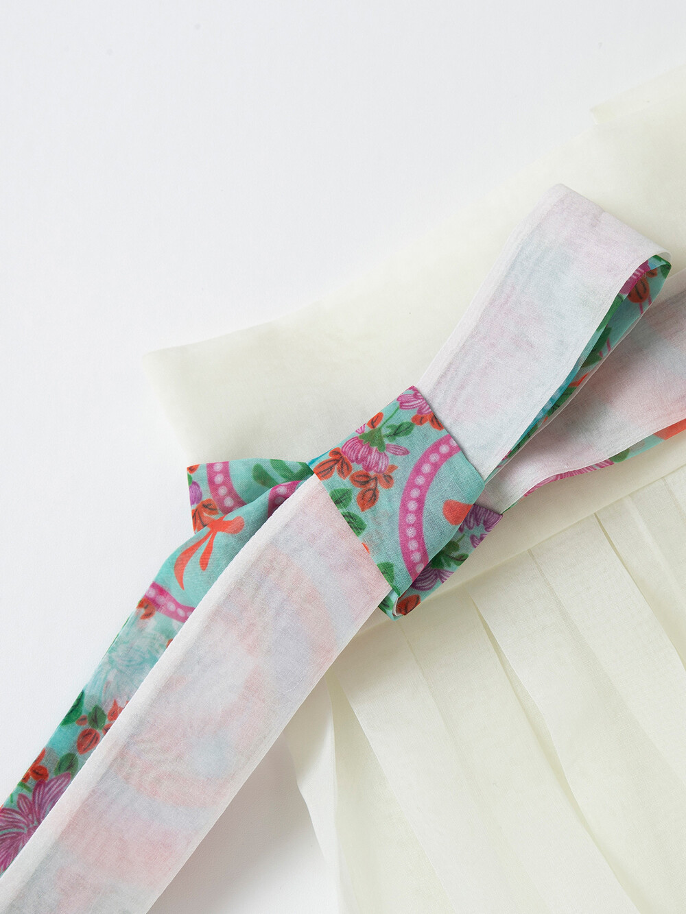 홑겹 화문 치마는 조선 궁중 도배지 문양인 봉황문 인문보 태평성대 민트 색상이