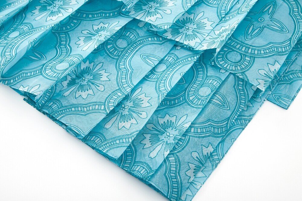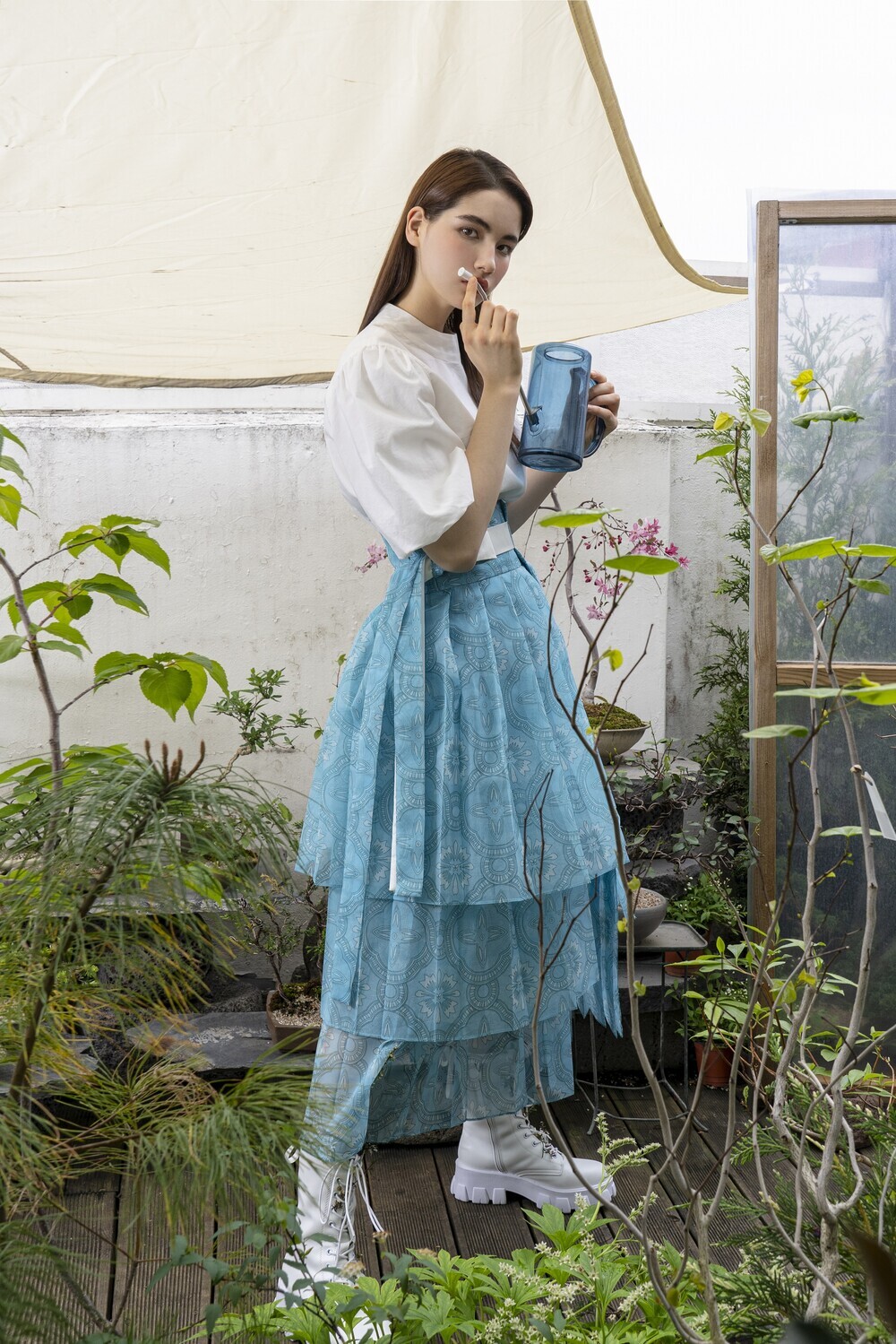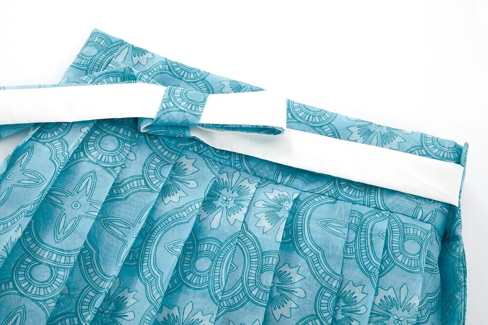 연하늘나비문 3단 플리츠 스커트는 궁중 도배지 문양인 나비문 문양을 패턴화하여