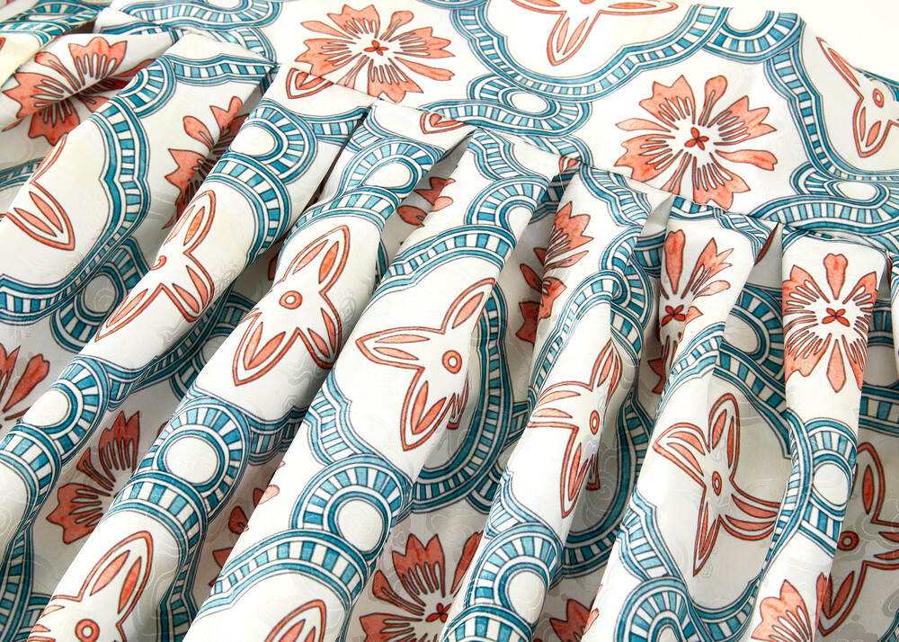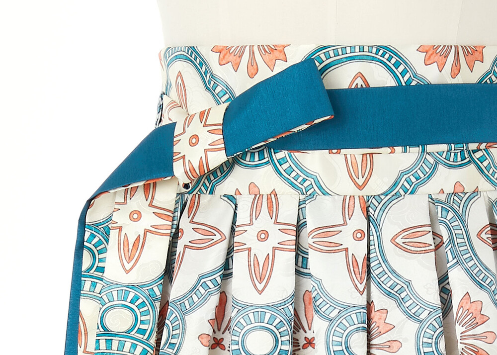 나비문 허리 치마는 한국의 전통 원단인 운문단에 프린팅 하여 고급스러운 광택감은 물론 실용성까지 갖췄습니다.