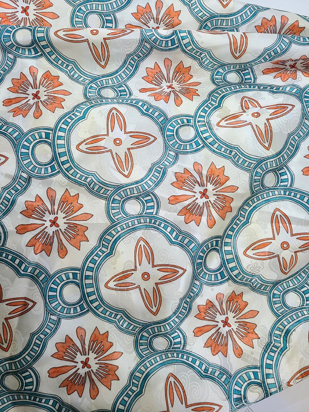 단하가 리디자인한 패턴은 따뜻한 오렌지색과 원본 청색을 사용하여 귀여우면서 고급스러운 느낌을 더했습니다.