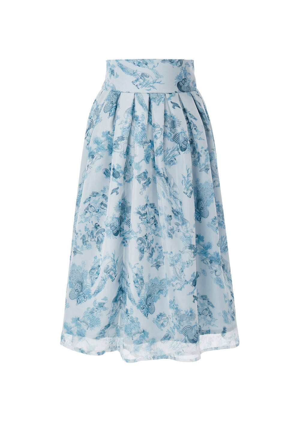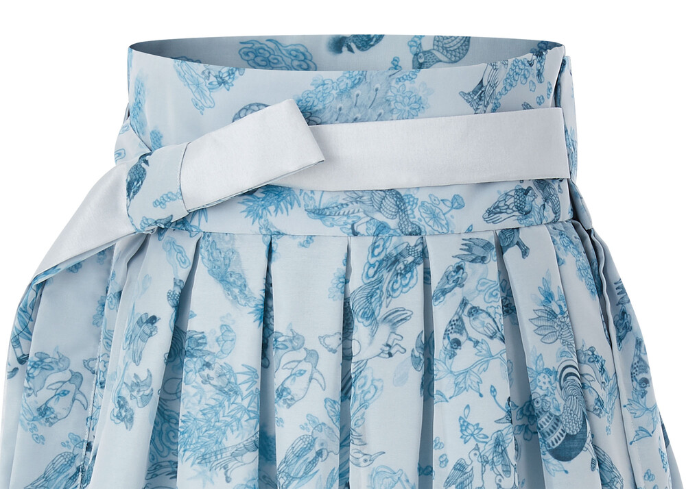 화조도 쉬폰 허리 치마는 이 전경 작가님의 화조도 패턴을 사용한 허리 치마로,