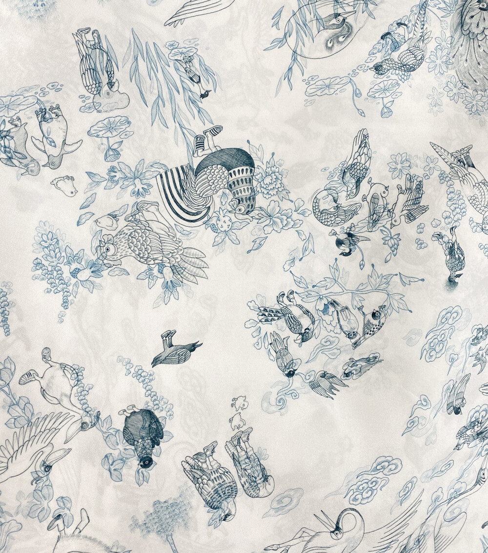 * 실제 화조도 패턴의 색감은 위 사진과 같이 조금 더 어두운 남색입니다.
