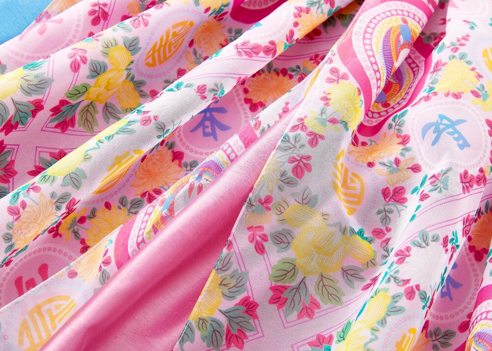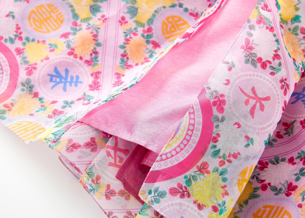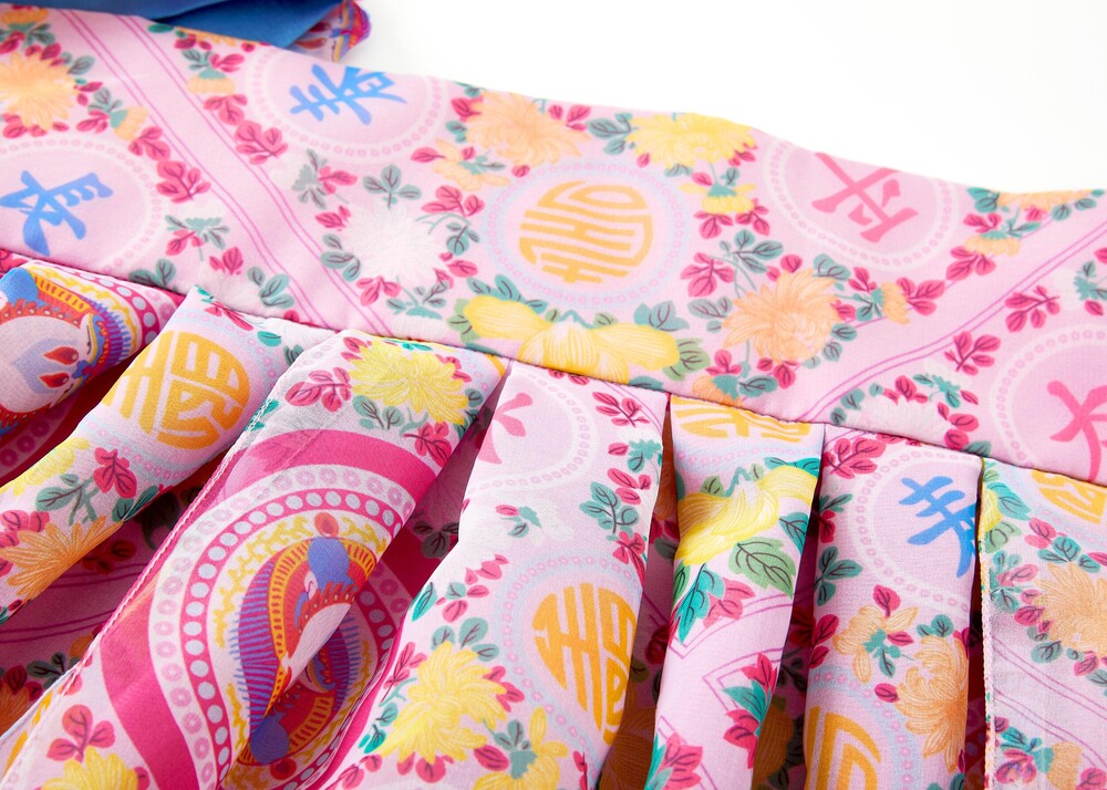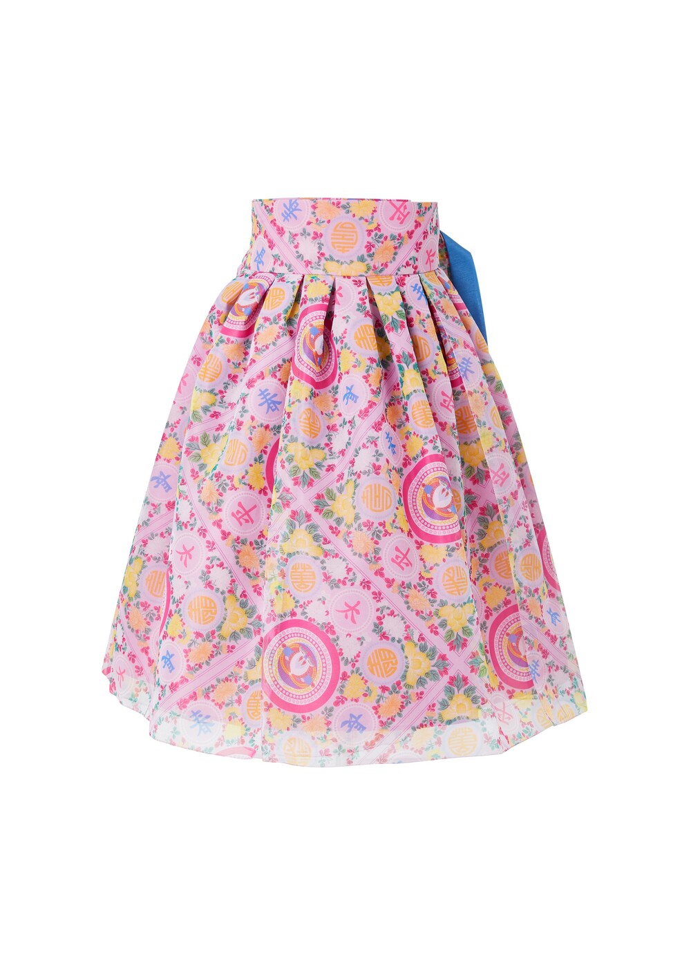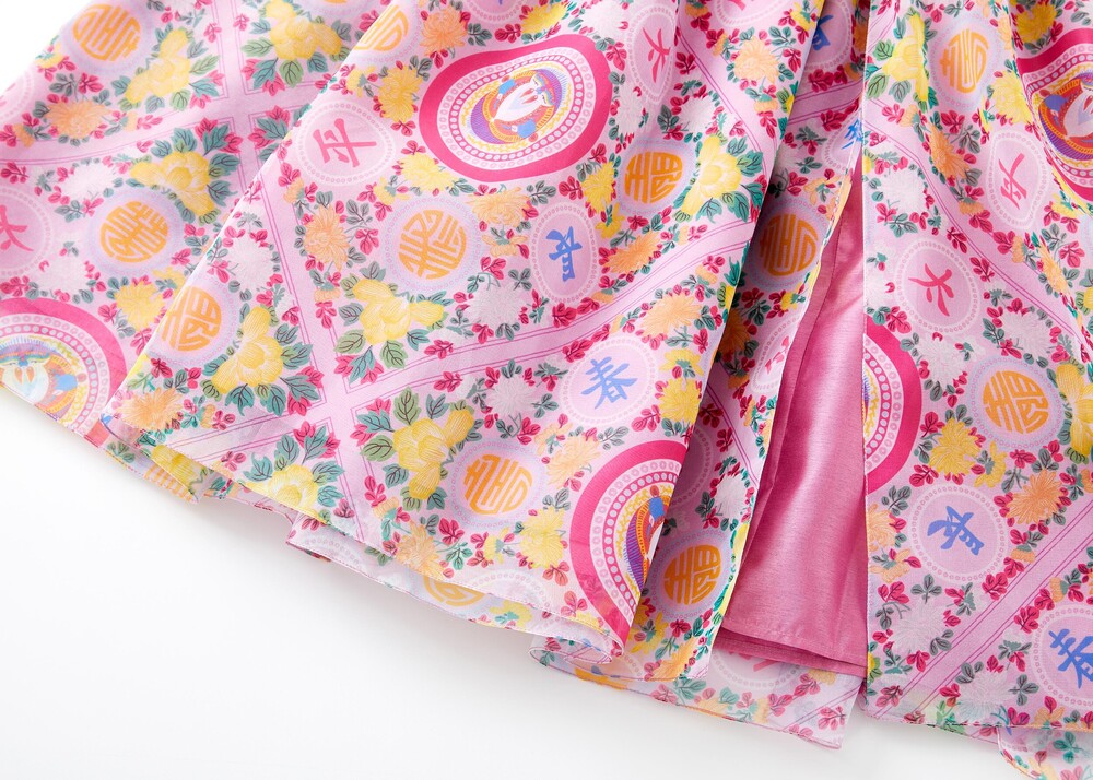 핑크색의 뉴 봉황문 패턴으로 발랄한 이미지가 돋보이는 허리 치마입니다.