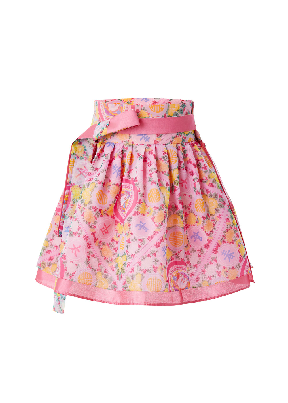 쉘핑크 뉴 봉황문 미니 허리 치마는 조선시대 궁중 보자기 패턴인 봉황문 인문보로 디자인된 둘러입는 스커트입니다.