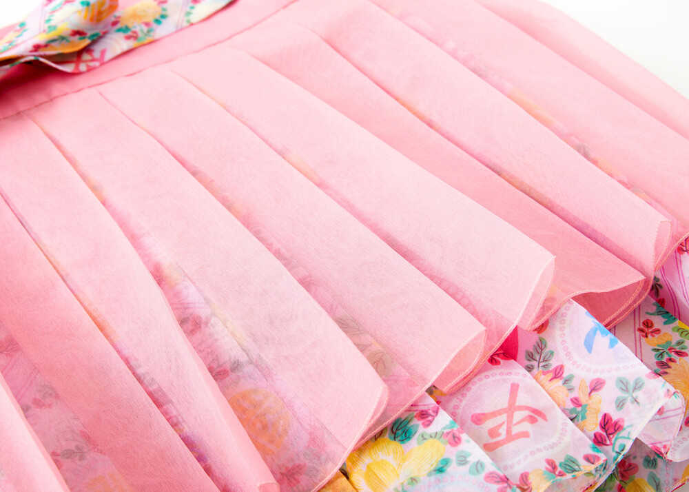 조선시대 궁중 보자기 패턴인 봉황문 인문보로 디자인된 둘러입는 플리츠스커트입니다.