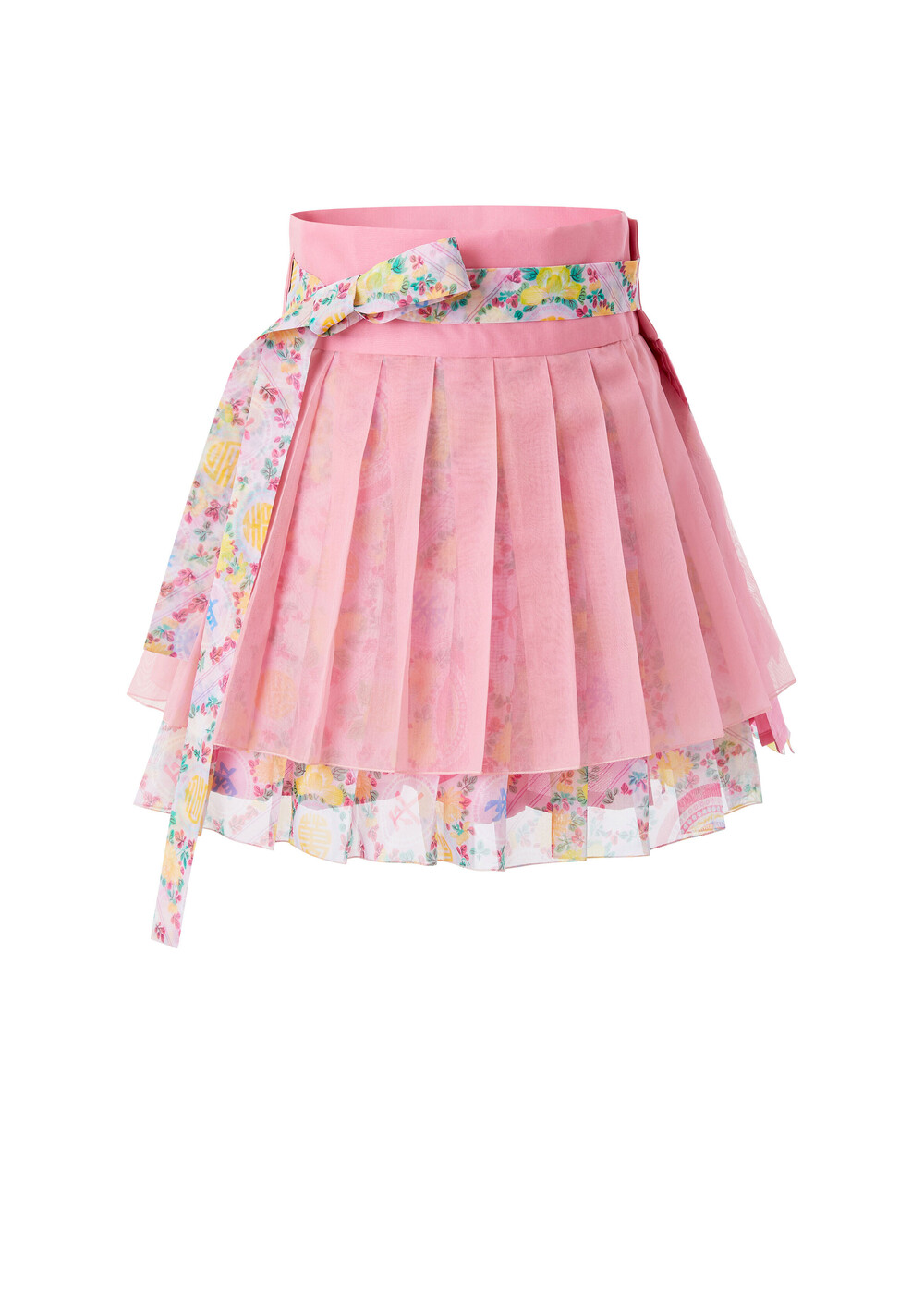 핑크색과 짧은 기장감으로 발랄한 이미지가 돋보이는 허리 치마로,