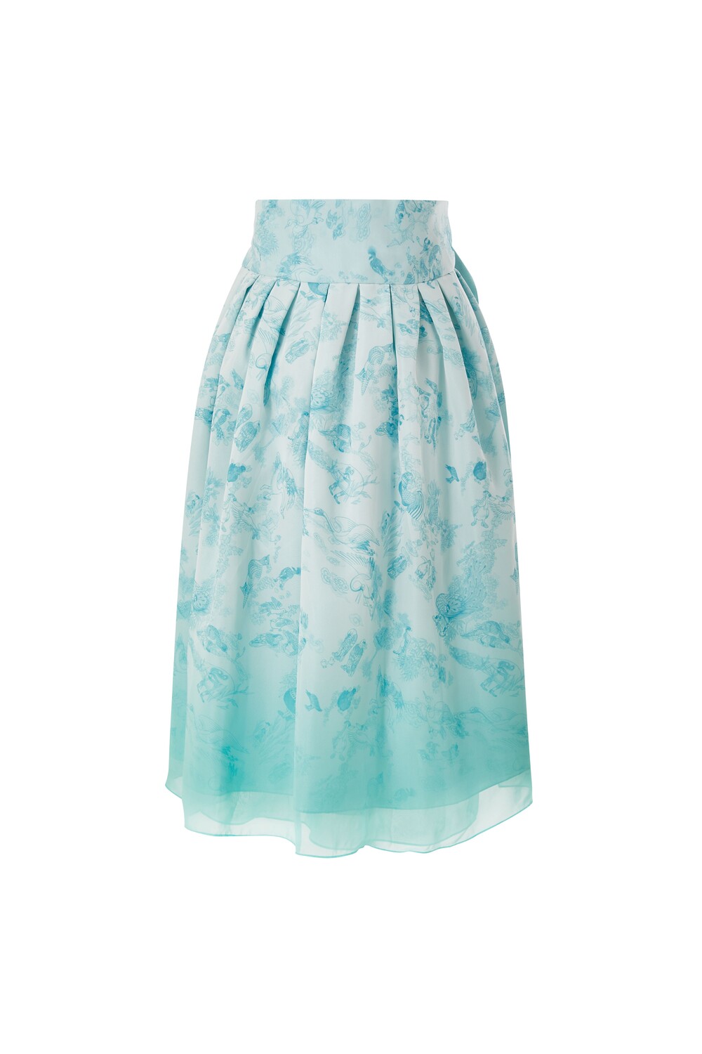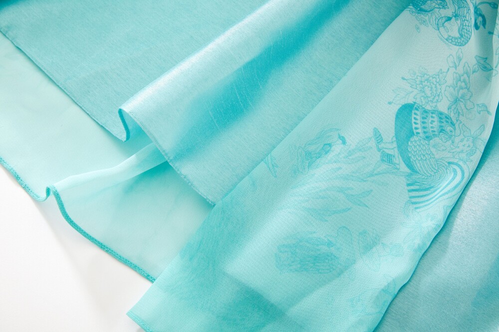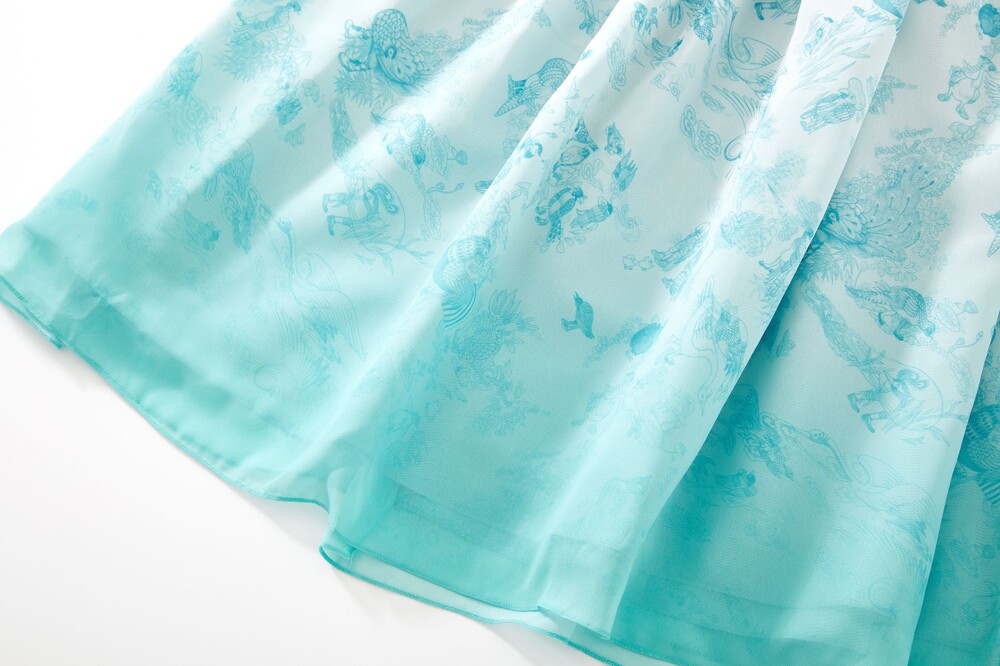 베이비 블루 화조도 그라데이션 쉬폰 허리 치마