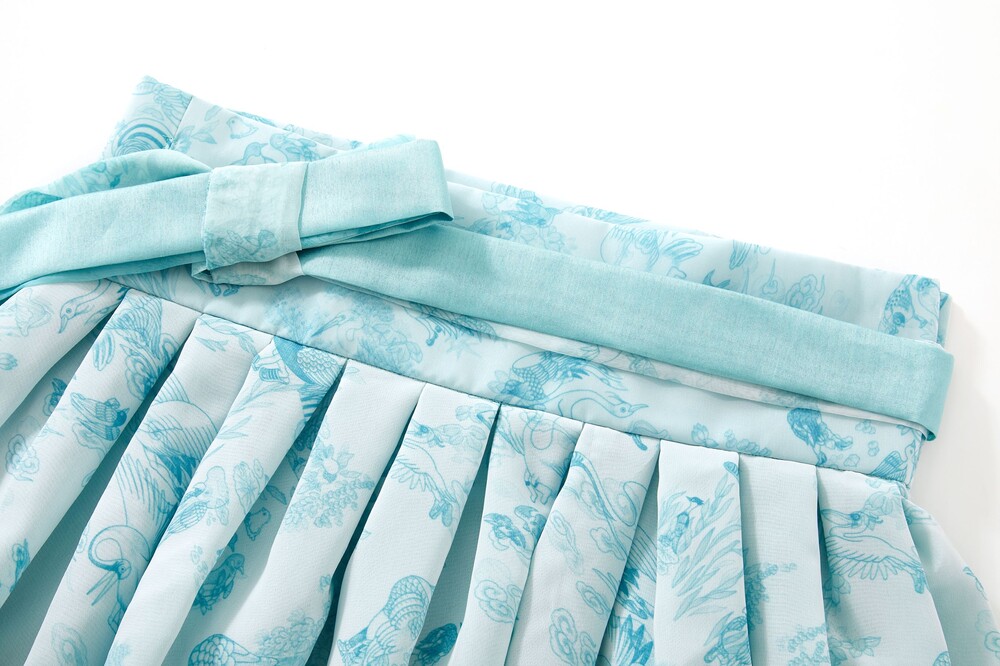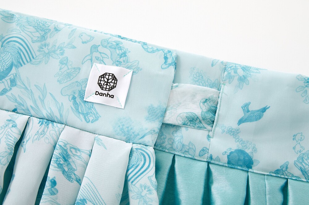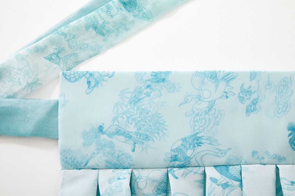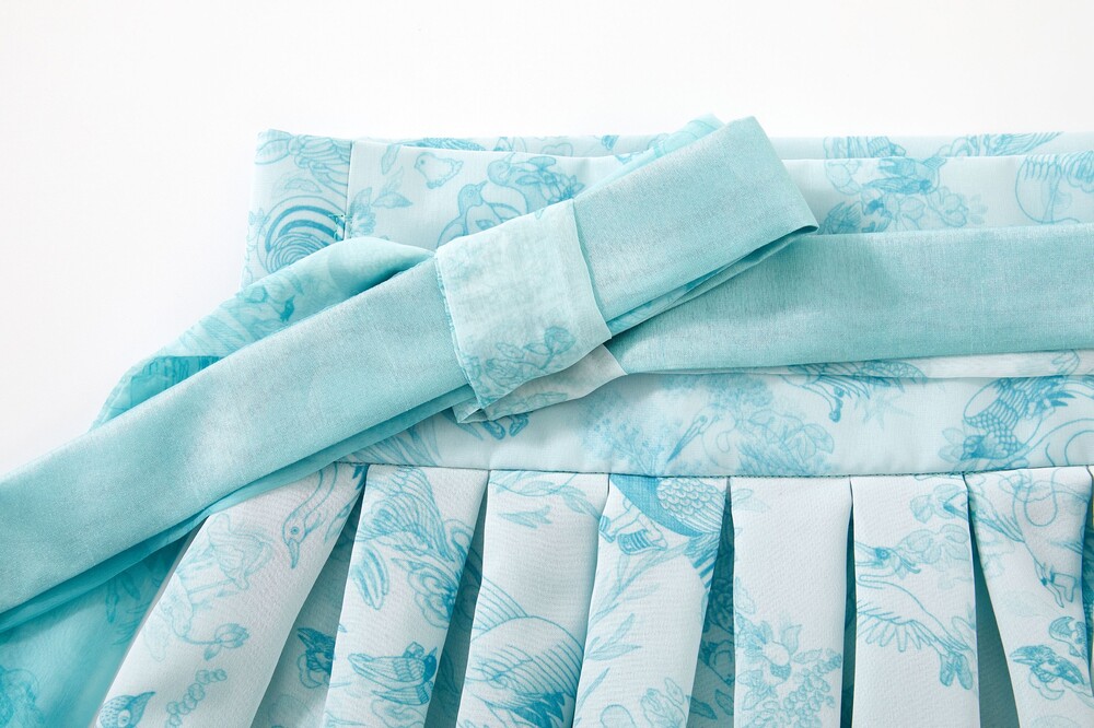 베이비 블루 화조도 그라데이션 허리 치마