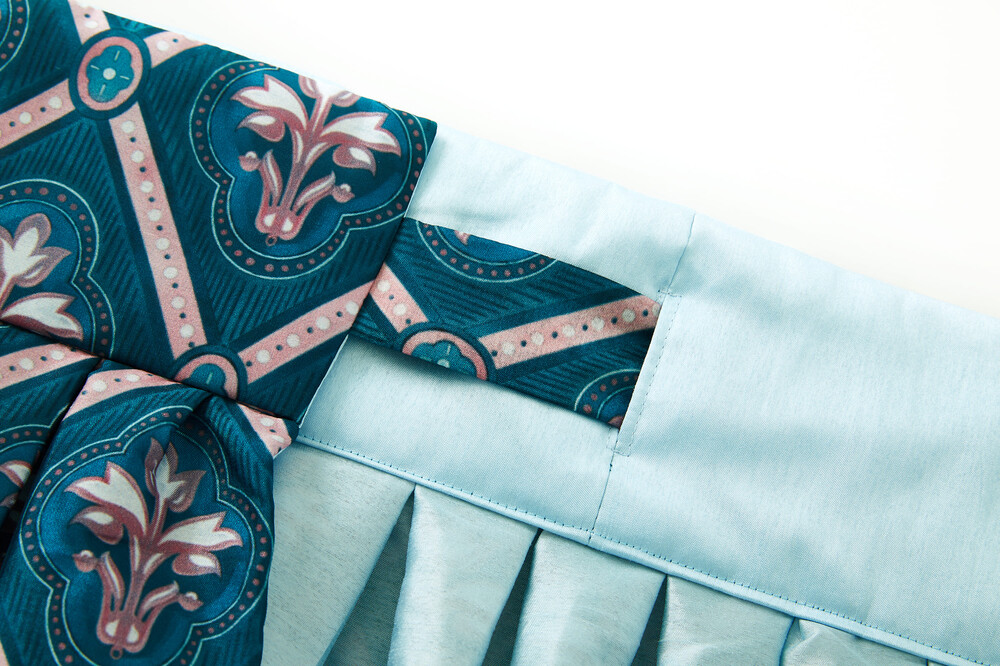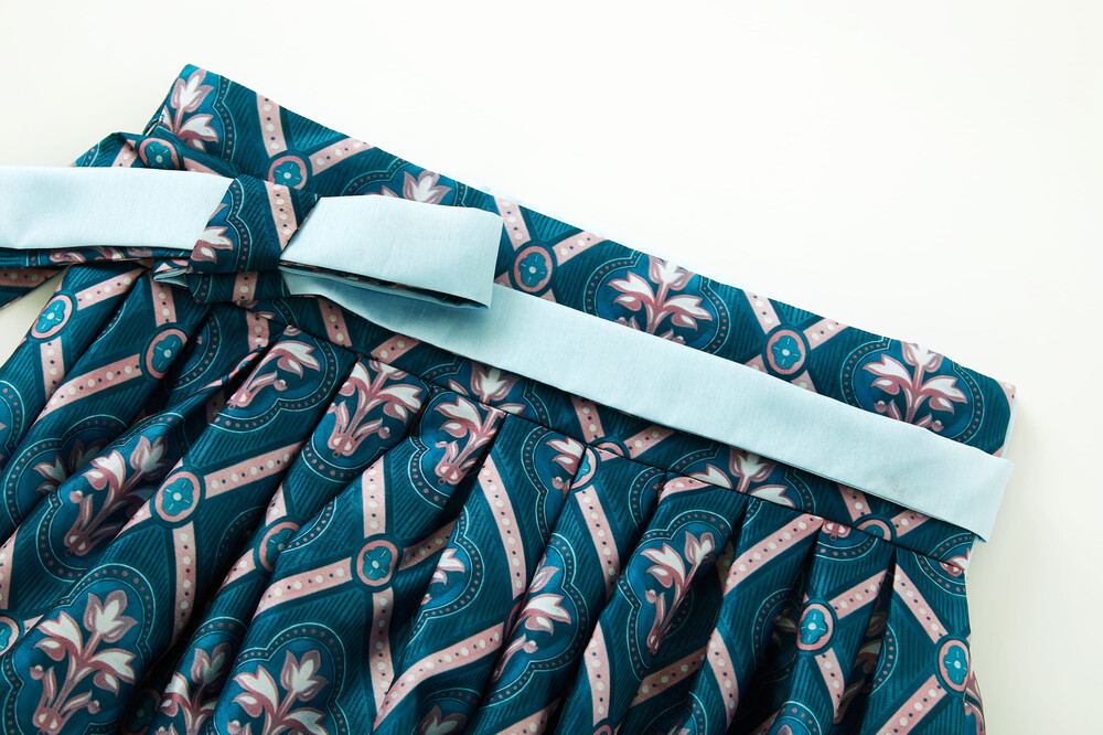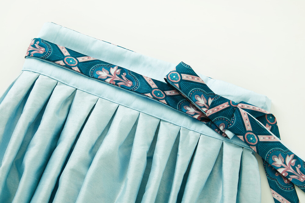 단하의 시그니처 패턴인 청당초문으로 제작된 리버서블 궁보 치마입니다.