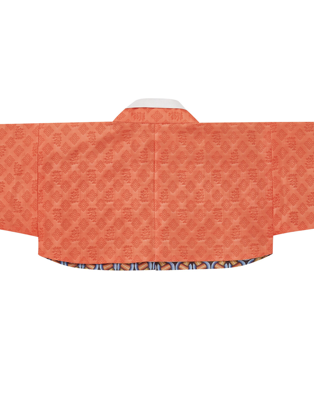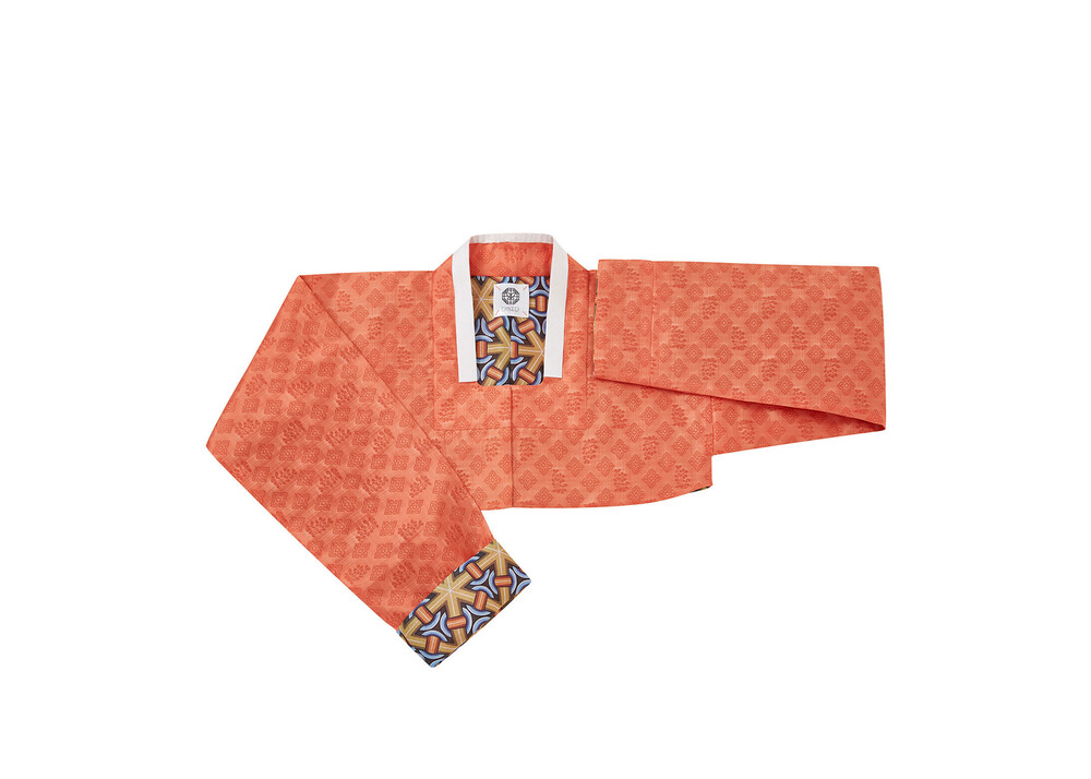 쌀미고리금 방령깃 저고리는 전통적인 방령깃 디테일을 활용하여 디자인되었습니다.