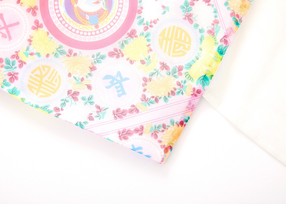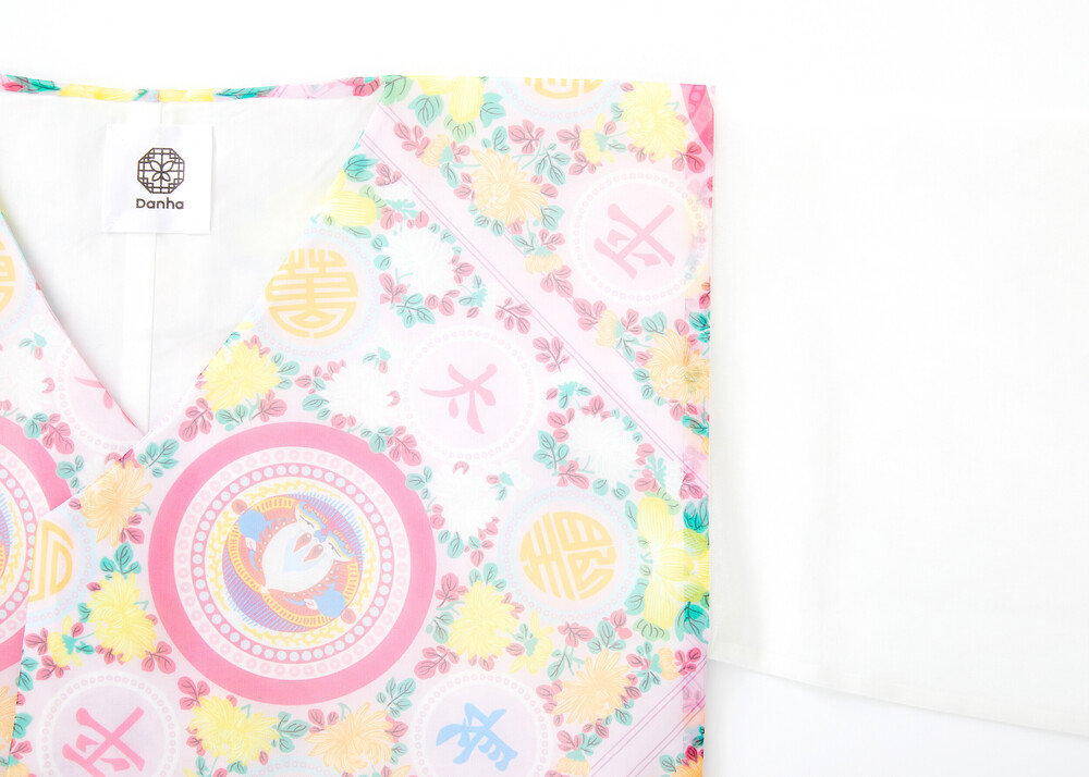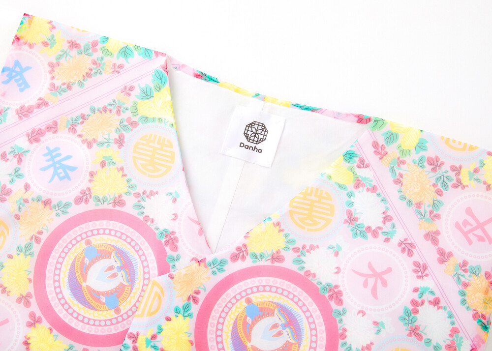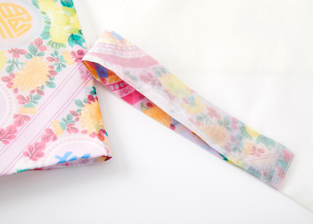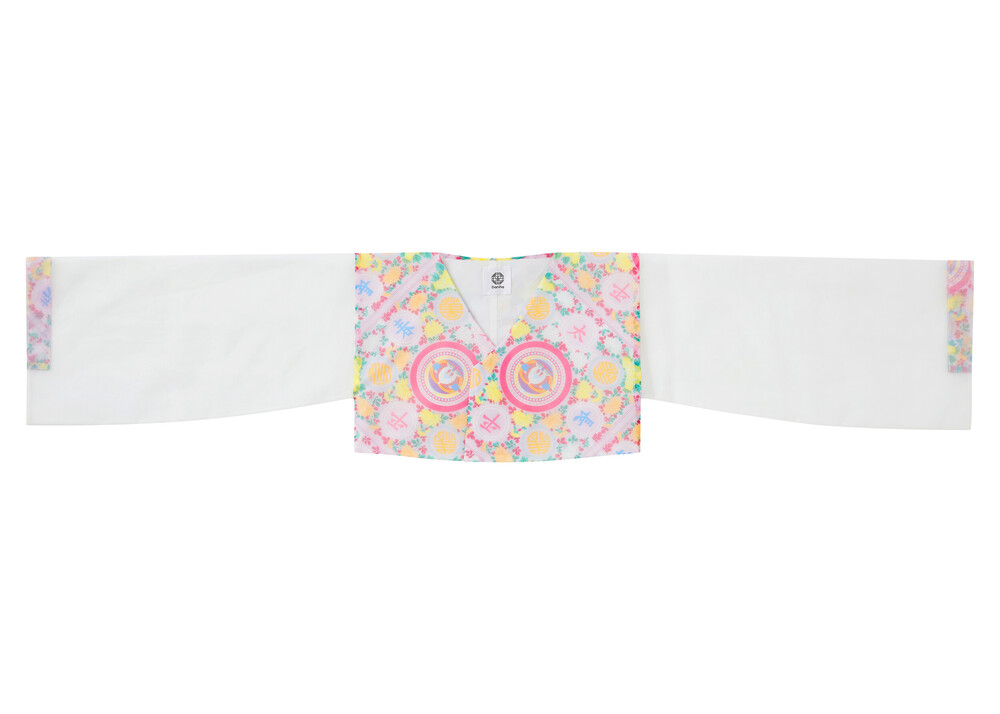 조선시대 궁중 보자기 패턴인 봉황문 인문보로 디자인된 깃과 여밈이 없는 디자인의 저고리입니다.