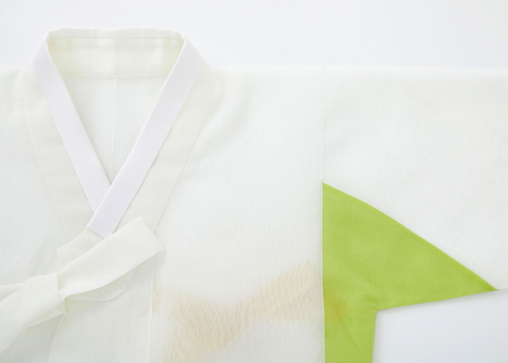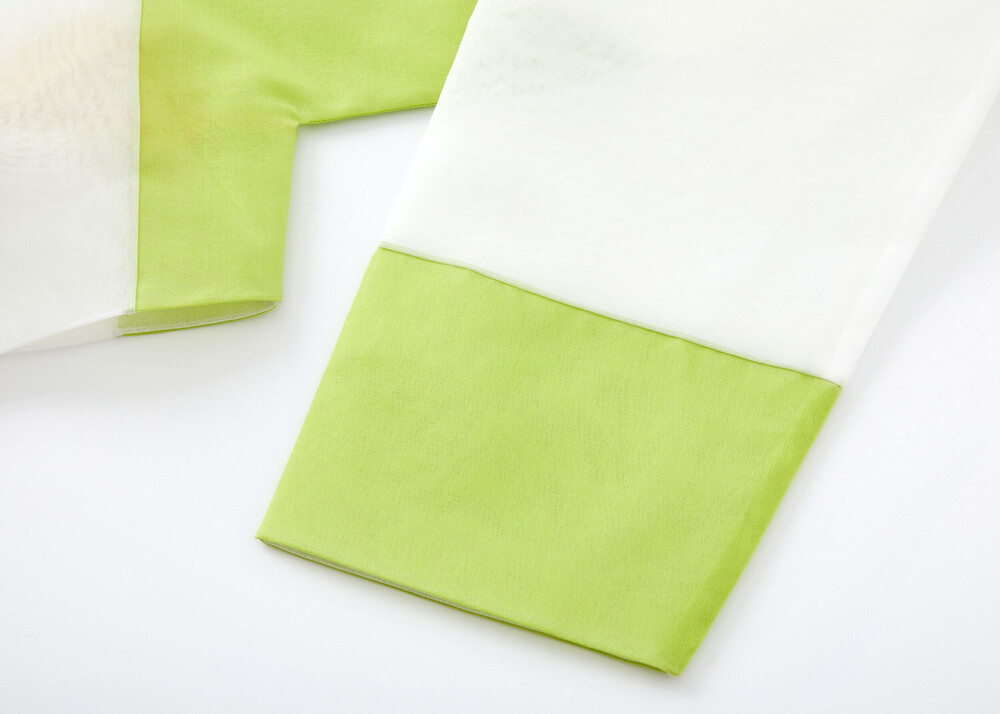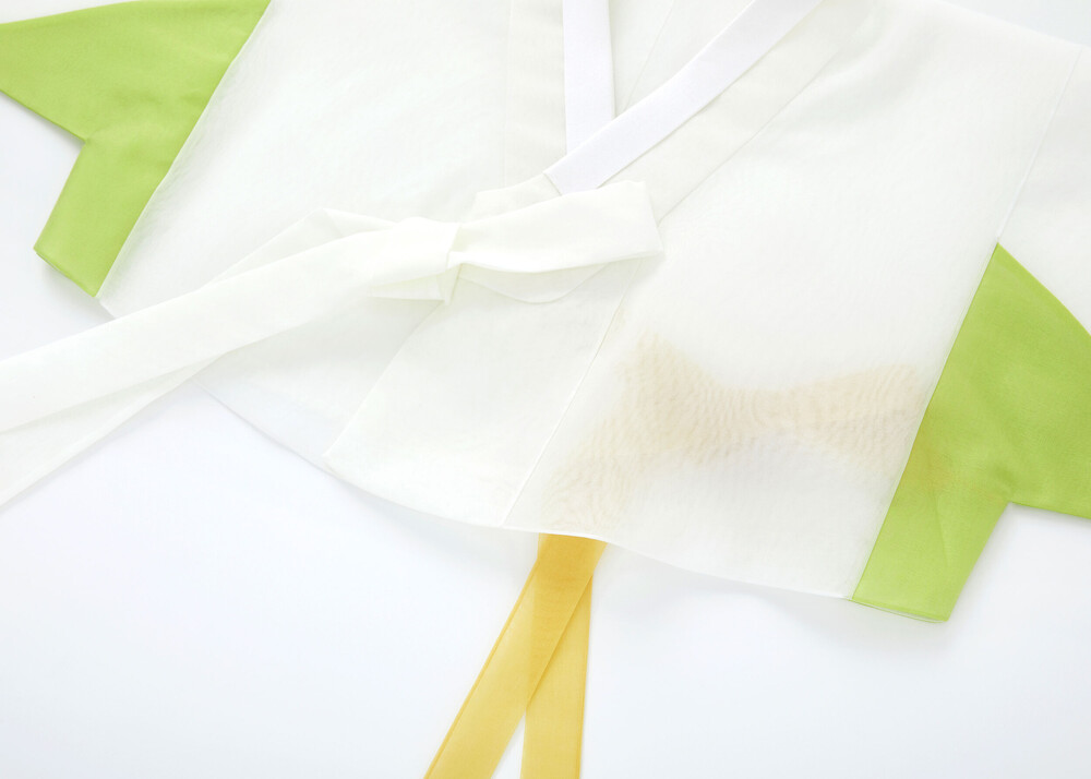 노란색 속고름과 연두색상이 포인트인 저고리입니다.