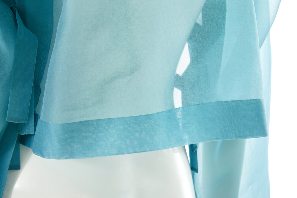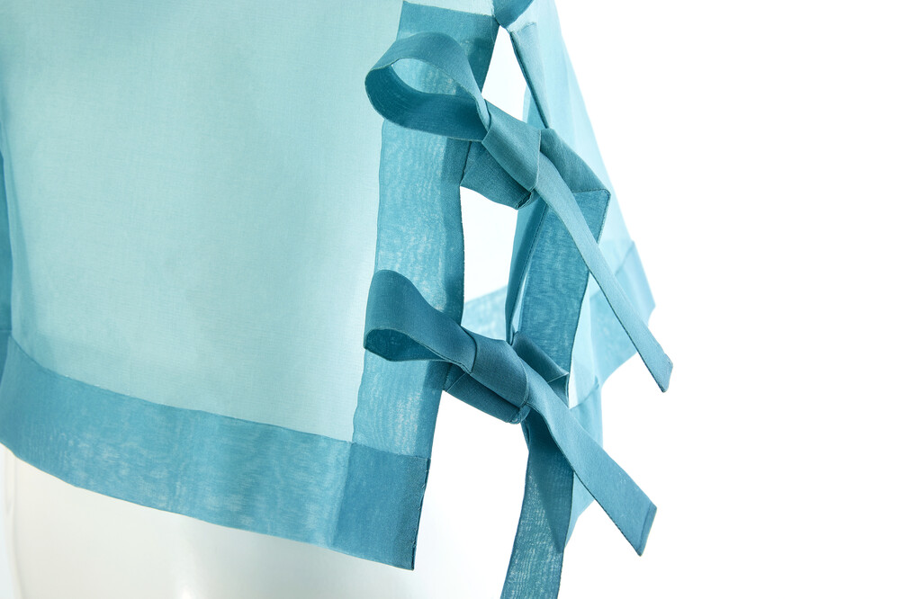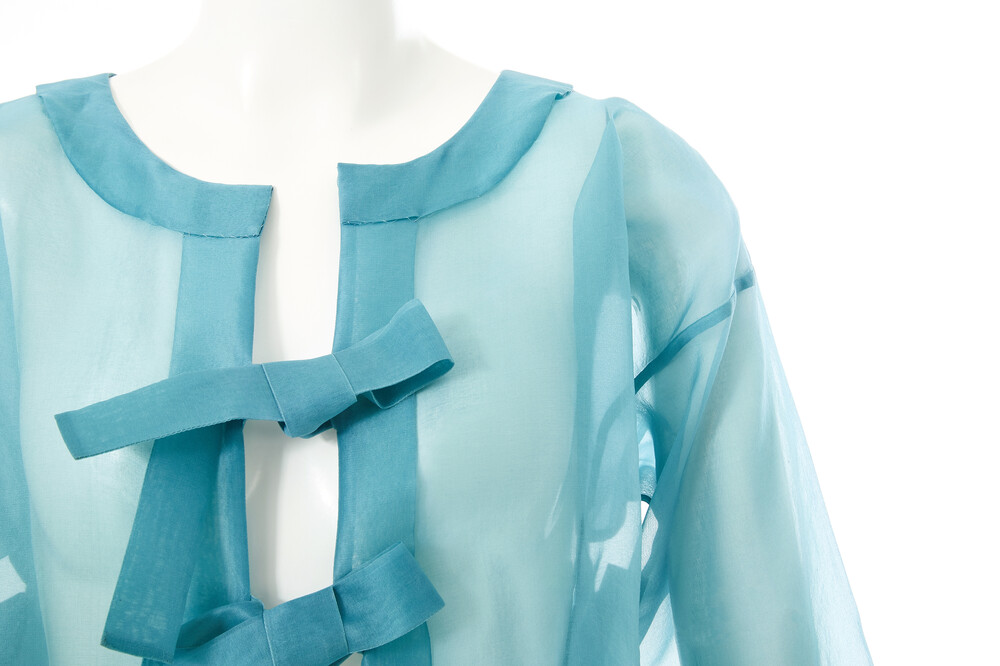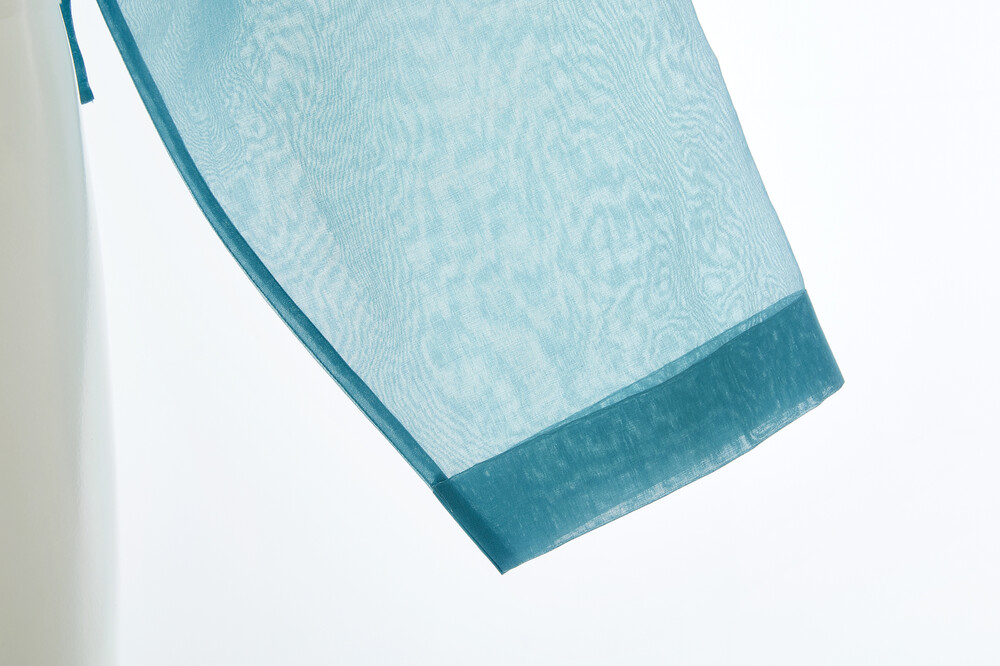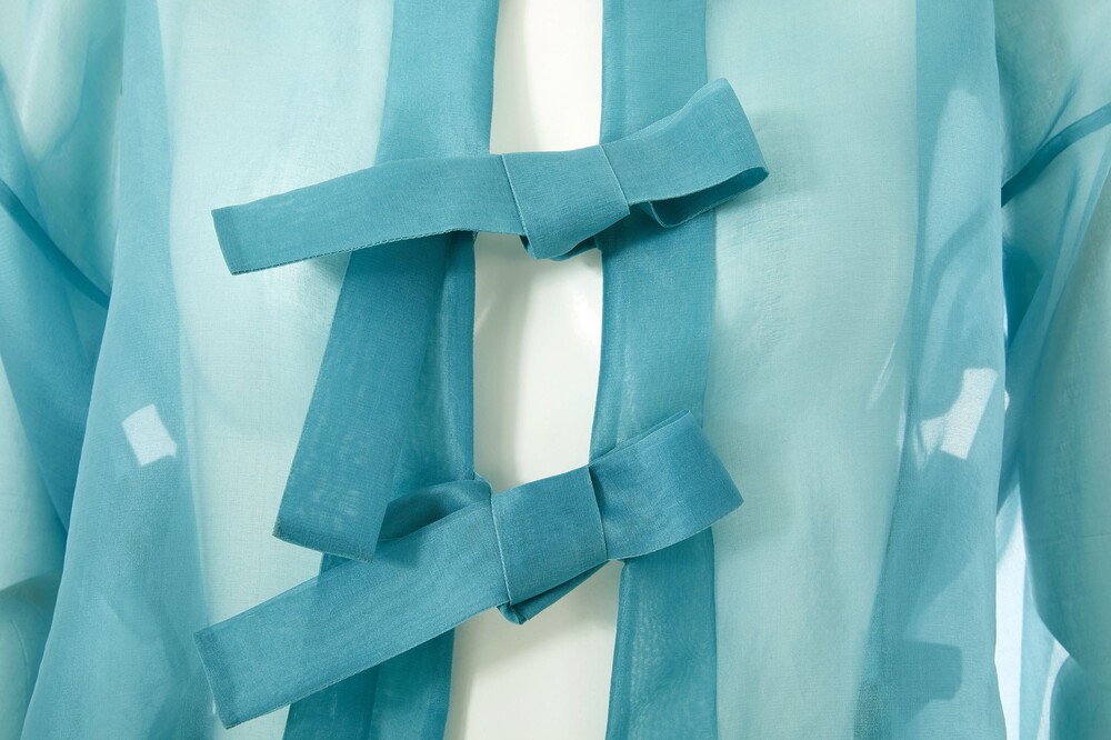리본 여밈은 착용자의 개성에 맞춰 다양한 연출이 가능하며, 전체적인 룩에 포인트를 주는 동시에 우아한 실루엣을 강조합니다.