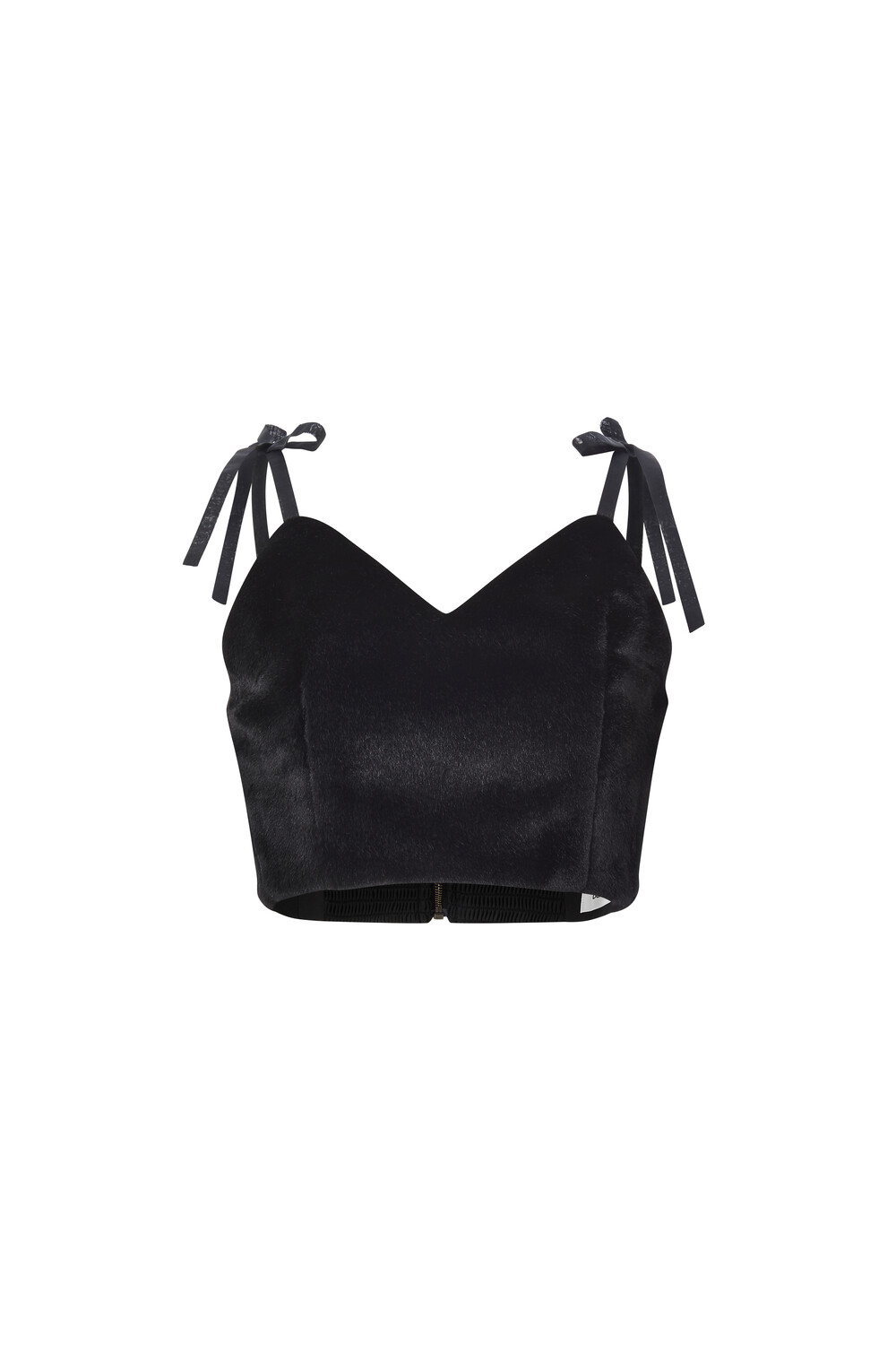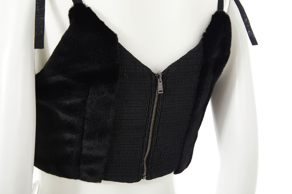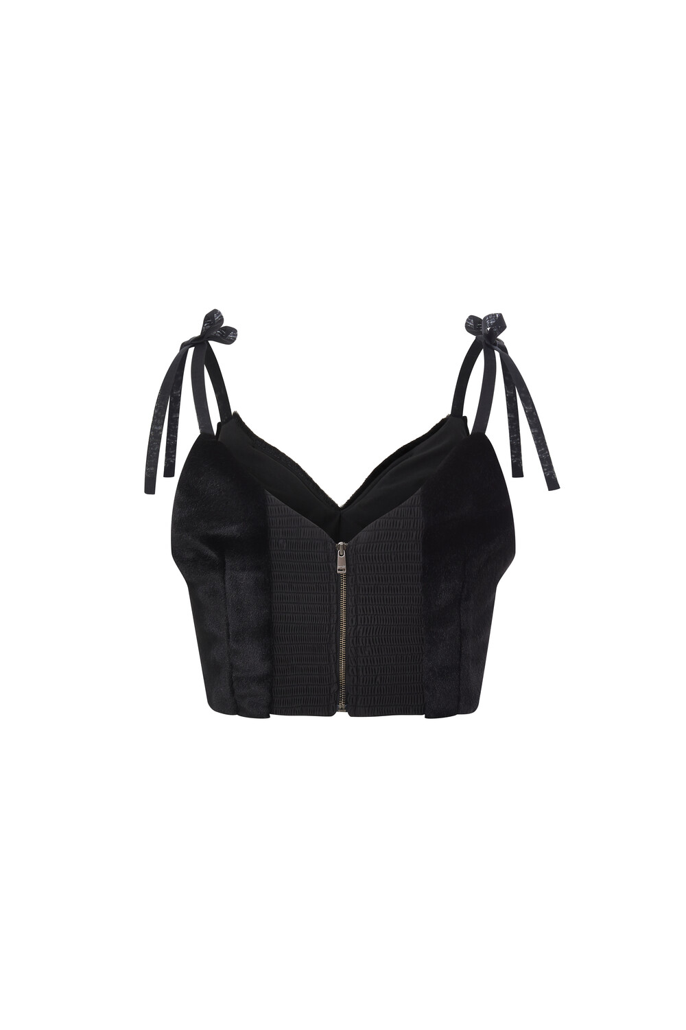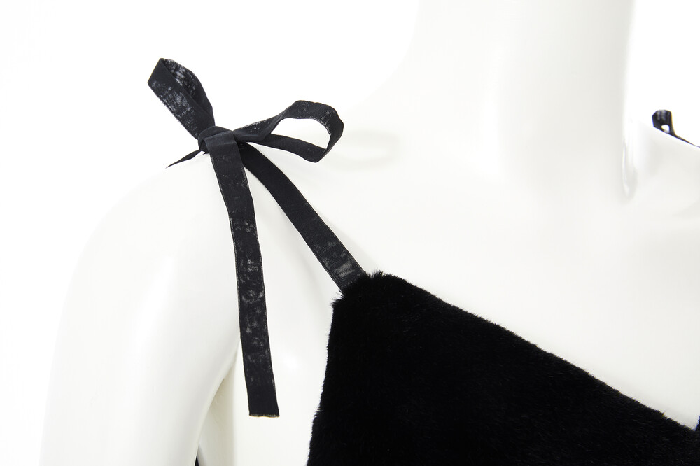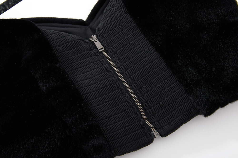비건 퍼 브이넥 크롭탑은 어깨 부분의 리본으로 사이즈 조절이 가능하여 편안하면서도 스타일리시한 착용감을 제공합니다. 브이넥 디자인은 목선을 길고 가늘어 보이게 하여 더욱 여리여리한 인상을 주며, 다양한 상의와 손쉽게 레이어드할 수 있어 활용도가 높습니다. 고급스러운 비건 퍼 소재로 따뜻함을 더하고, 세련된 룩을 완성하는 아이템입니다.