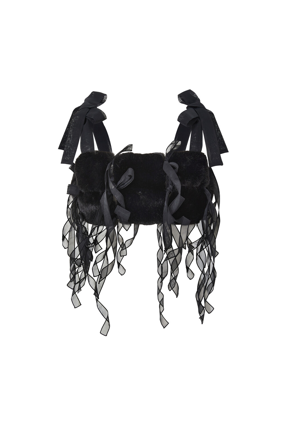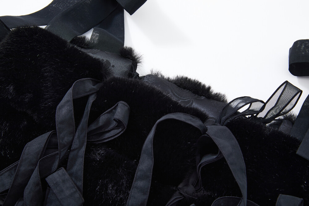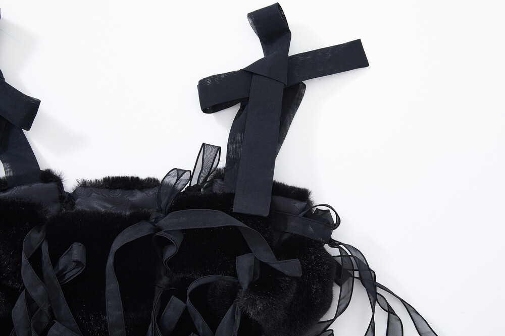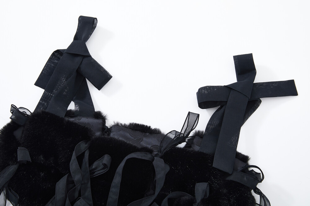 비건 퍼 크롭탑은 단하의 시그니처 봉황문 크롭탑 디자인을 비건 퍼 소재로 재해석한 아이템입니다. 어깨 부분은 리본으로 묶어 사이즈 조정이 가능하며, 편안한 착용감을 제공합니다. 비건 퍼 소재는 따뜻함을 더하고 소프트한 느낌을 주며, 퍼 끝에 달린 리본 디테일은 사랑스러운 포인트로 스타일에 개성을 더합니다. 세련되면서도 따뜻한 이 크롭탑은 다양한 스타일링에 적합한 고급스러운 선택입니다.