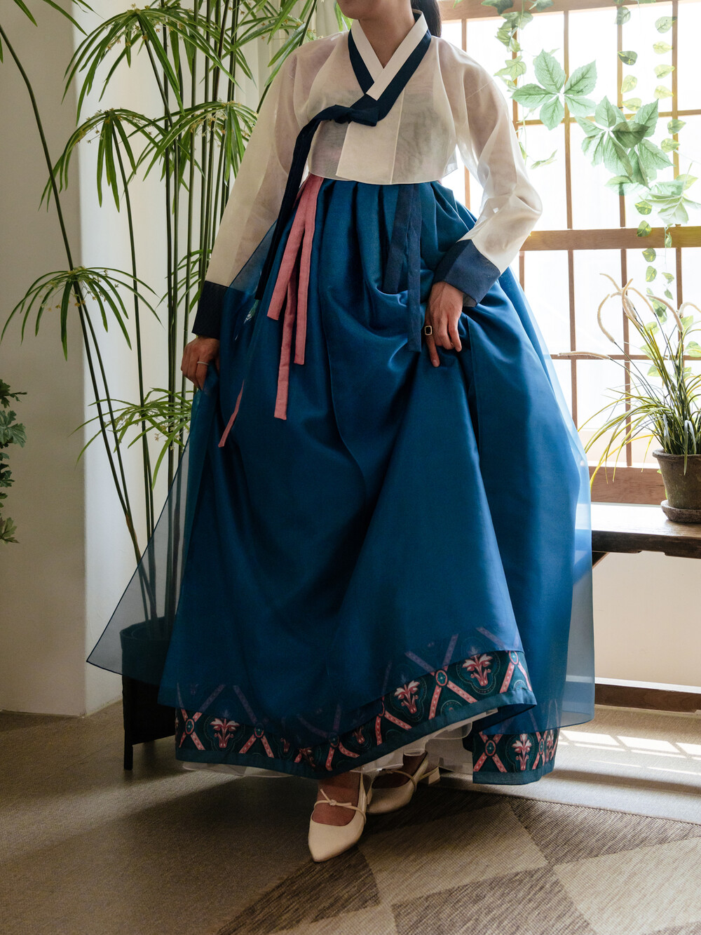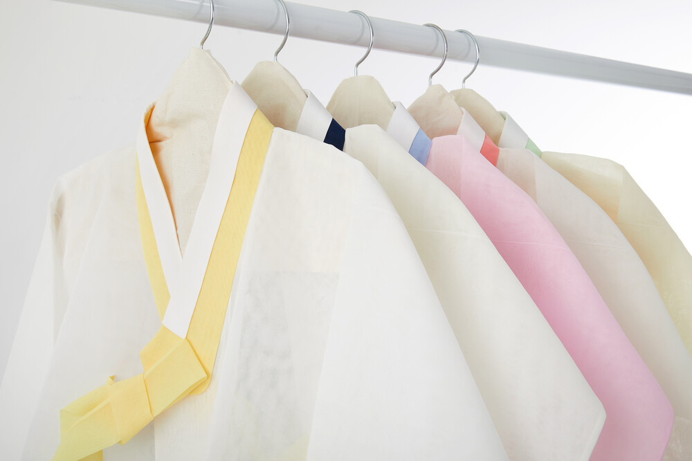 단하의 드레스, 허리치마, 아우터 등 보관이 용이하도록 노방백에 곱게 포장되어 발송됩니다.